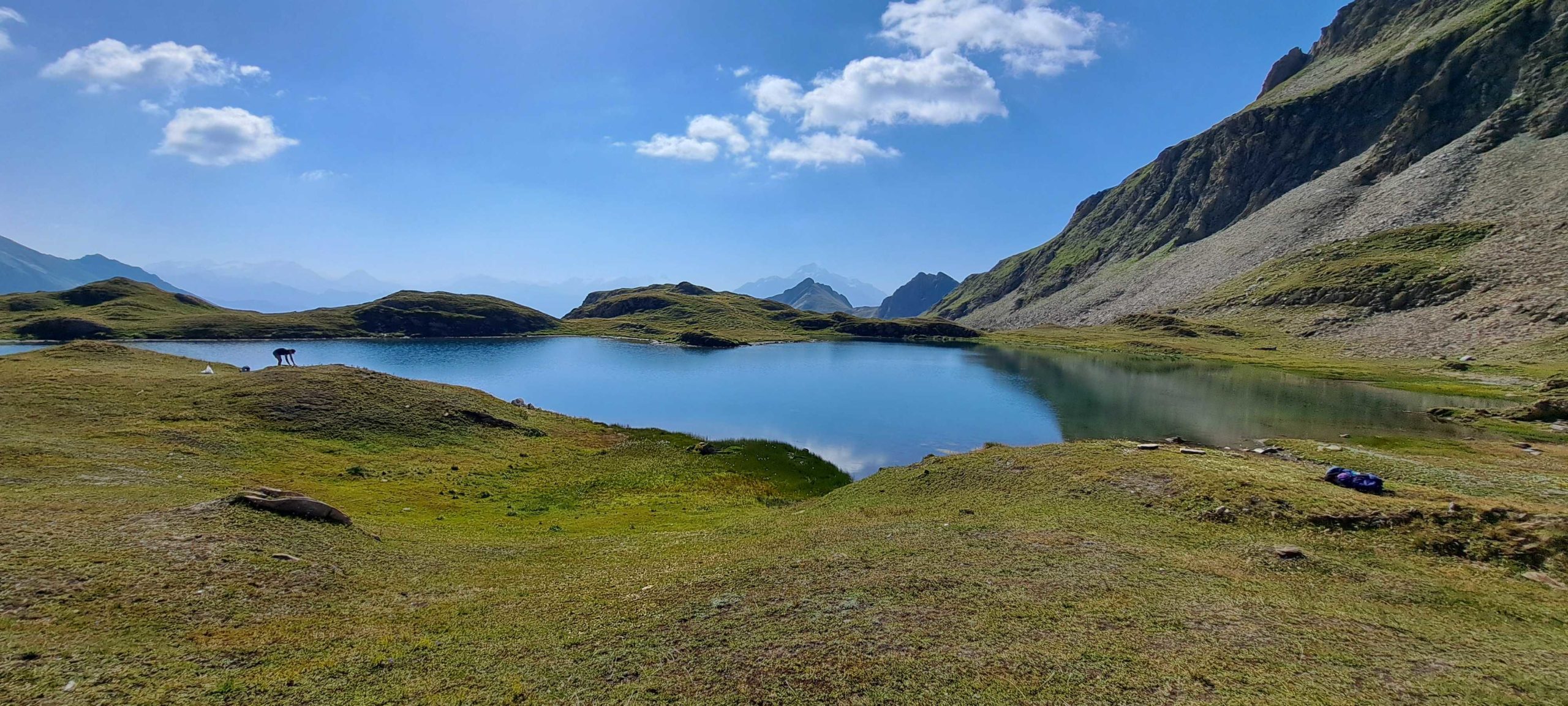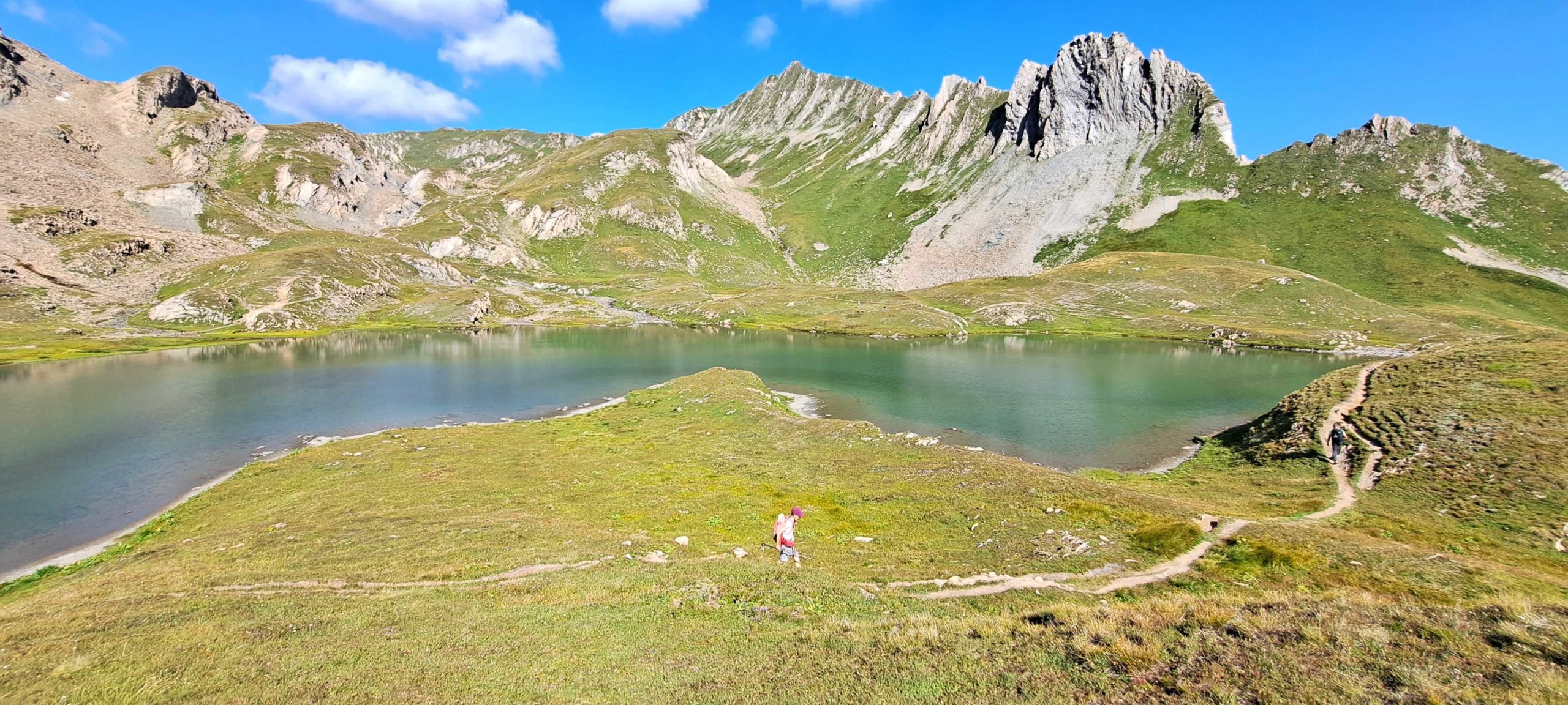 Un bouquetin joue dans les derniers névés, des éboulements de pierres proches se font régulièrement entendre, sans risques où nous sommes. Avant « cuisson », on décide de redescendre tranquillement par le même chemin, juste quelques boucles pour passer les lacs dans un autre sens. Nous arrivons au parking après 5h00 de marche, presque 900 mètres de dénivelé cumulé pour 15 km parcourus.