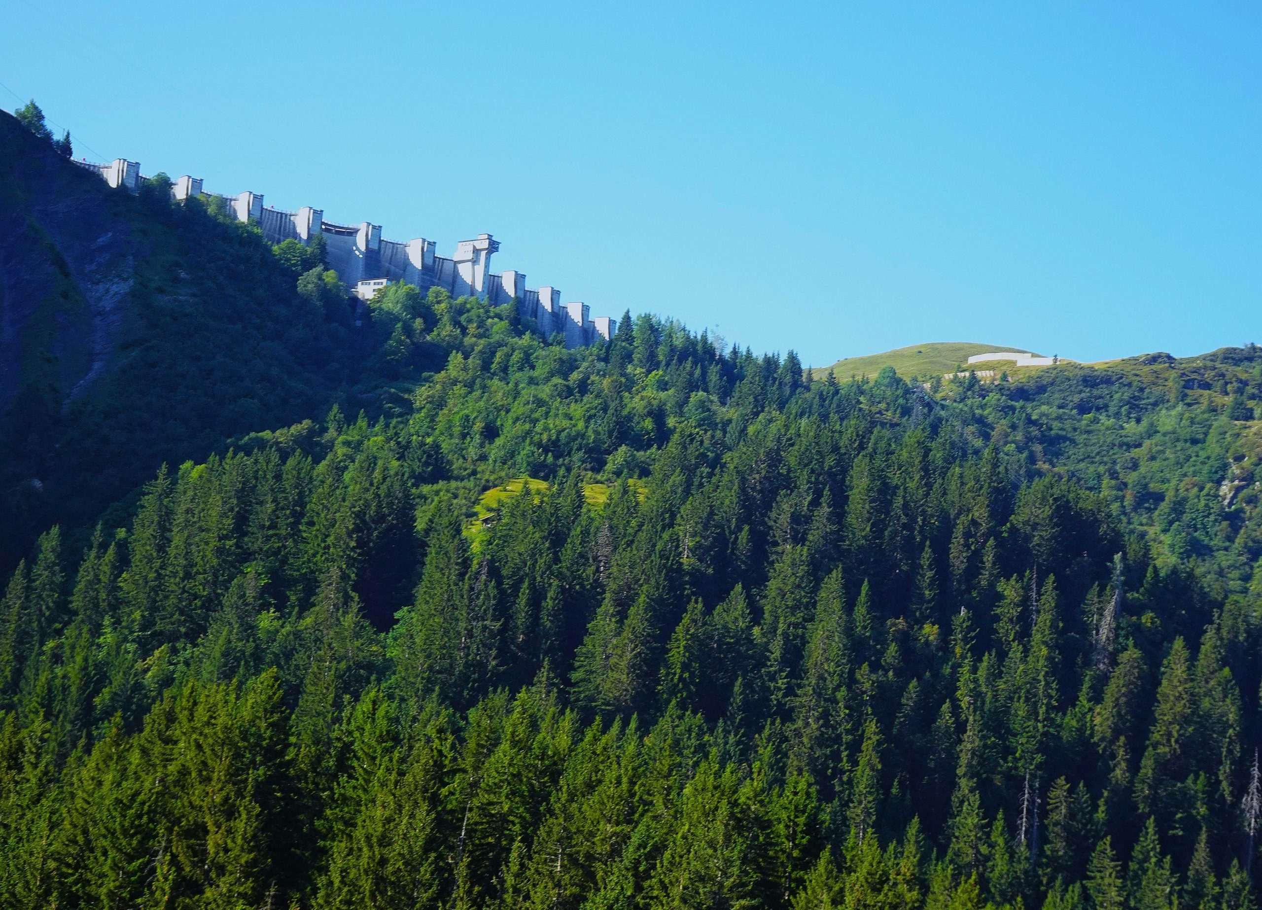 Direction Pin Cembro, pas sans raison puisque plusieurs pins de cette variété, sont là. Poursuivant notre boucle, surplombant le barrage, un chemin qui semble interminable pour revernir à notre point de départ.