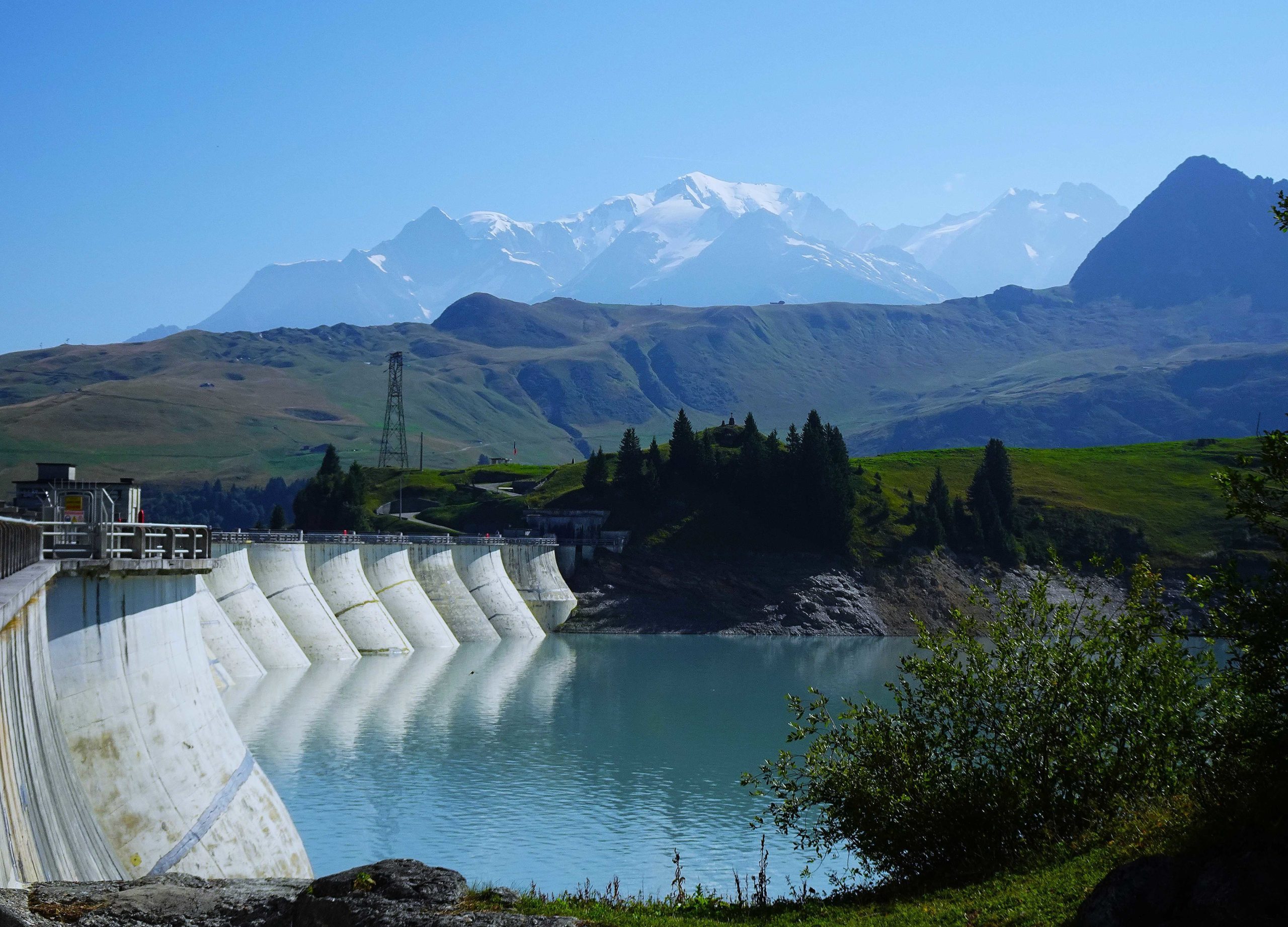 Ouvrage d’origine glaciaire qui se remplit grâce à la fonte des neiges du glacier de Tré la Tête (Massif du Mt Blanc) – ce qui explique sa couleur.