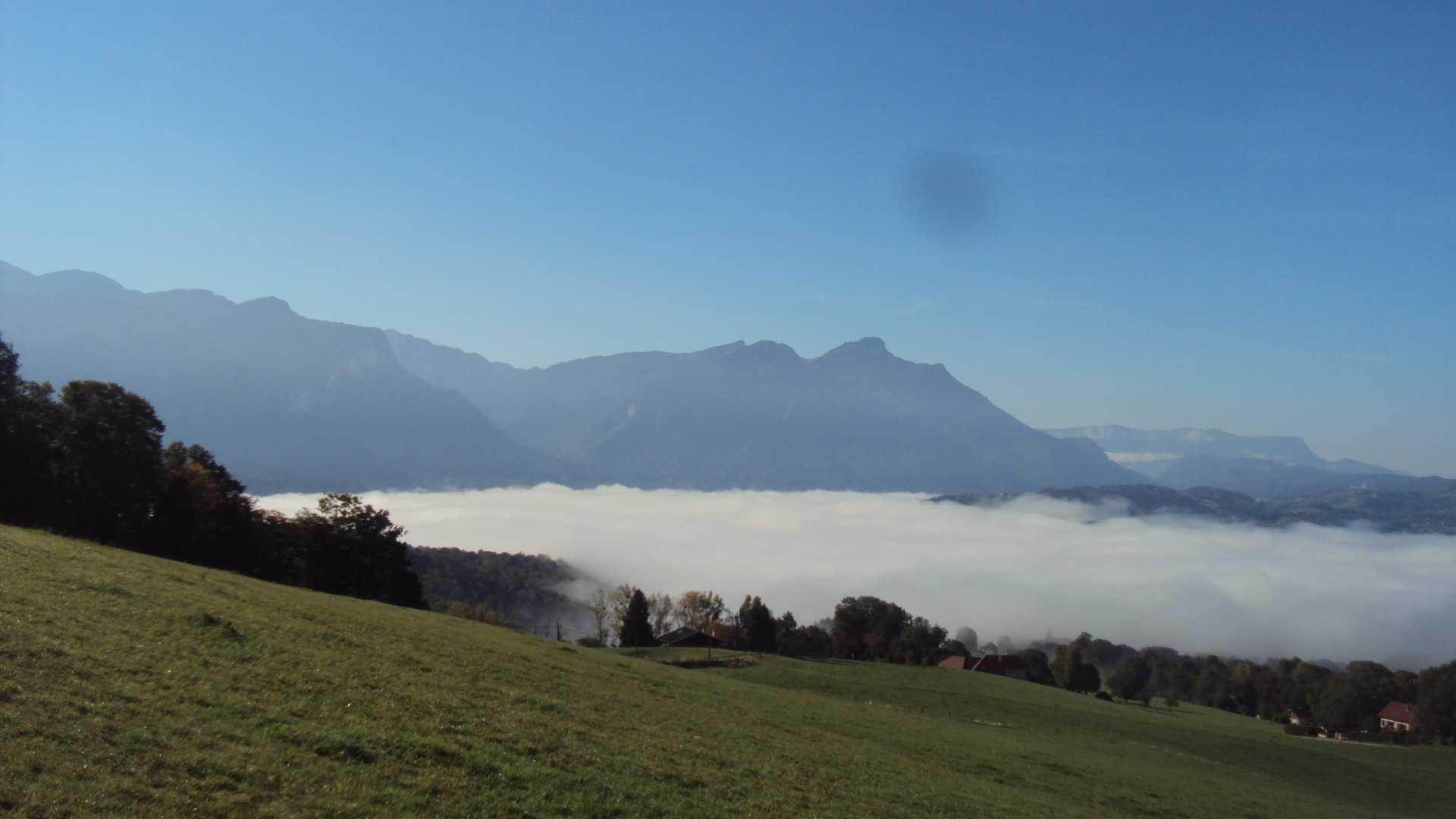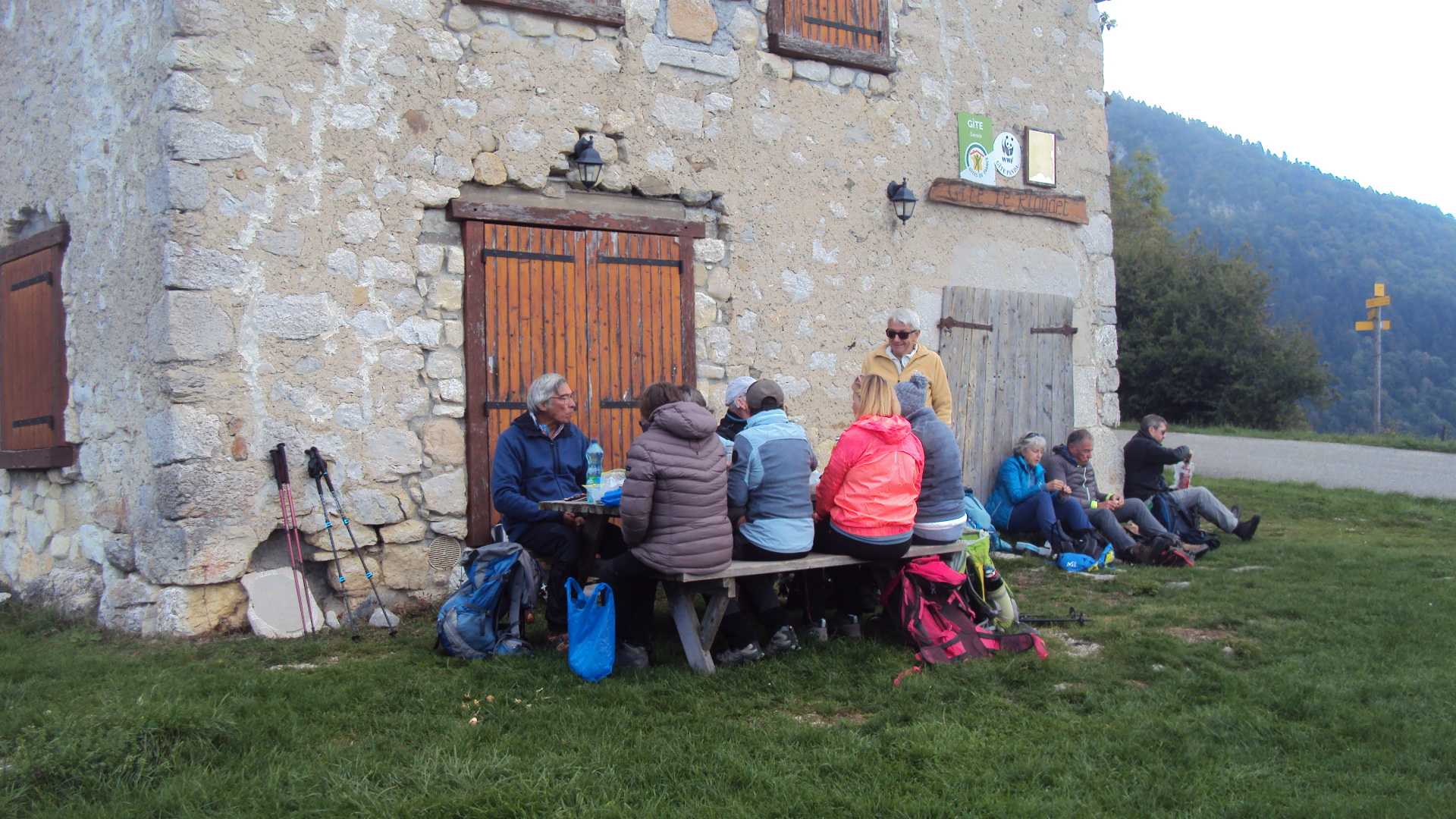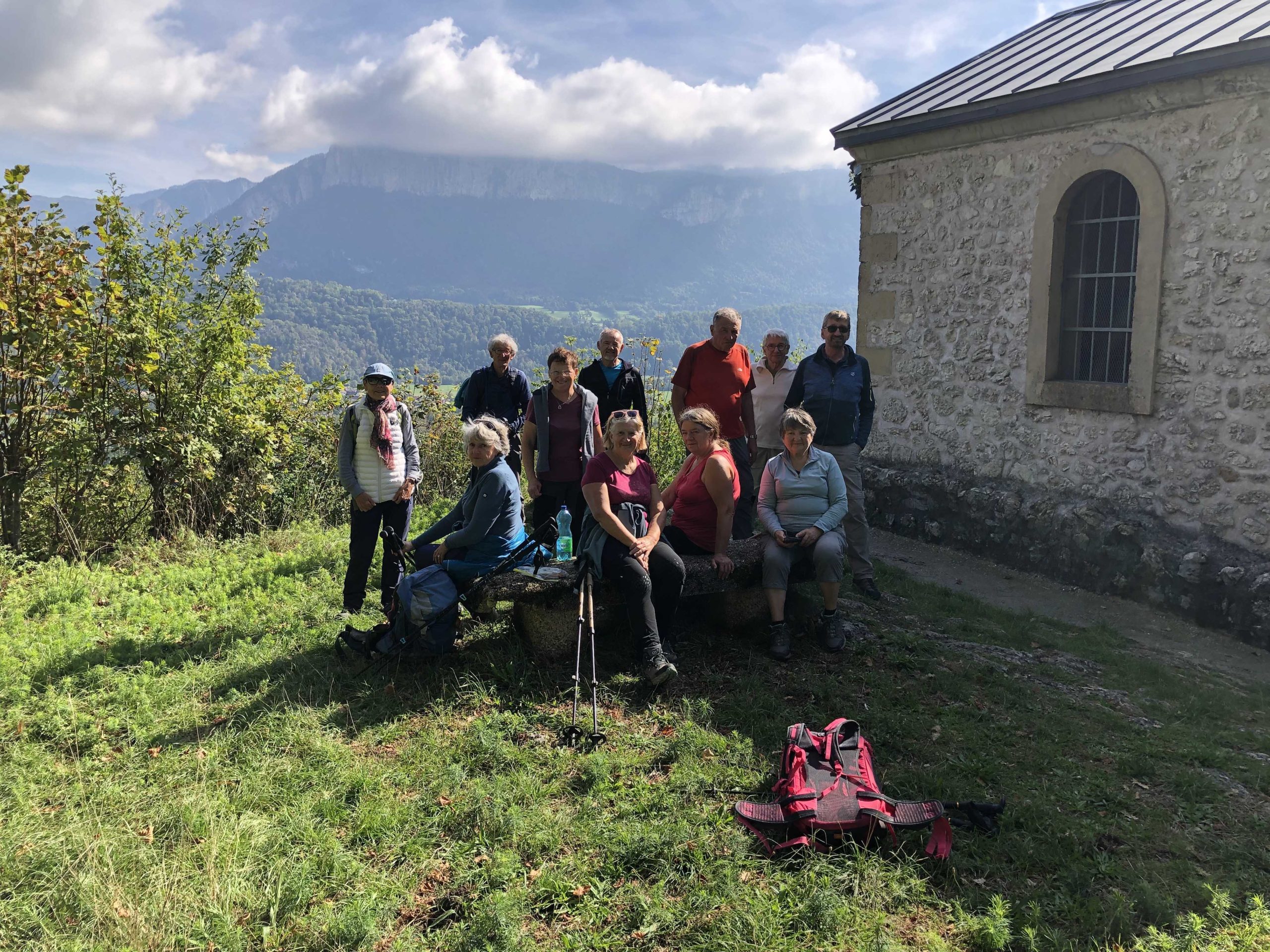 Nous admirons la chapelle et le joli panorama sur la vallée et le massif de la Chartreuse. Nous reprenons notre chemin de retour jusqu’à la marie où nous attendent nos véhicules .