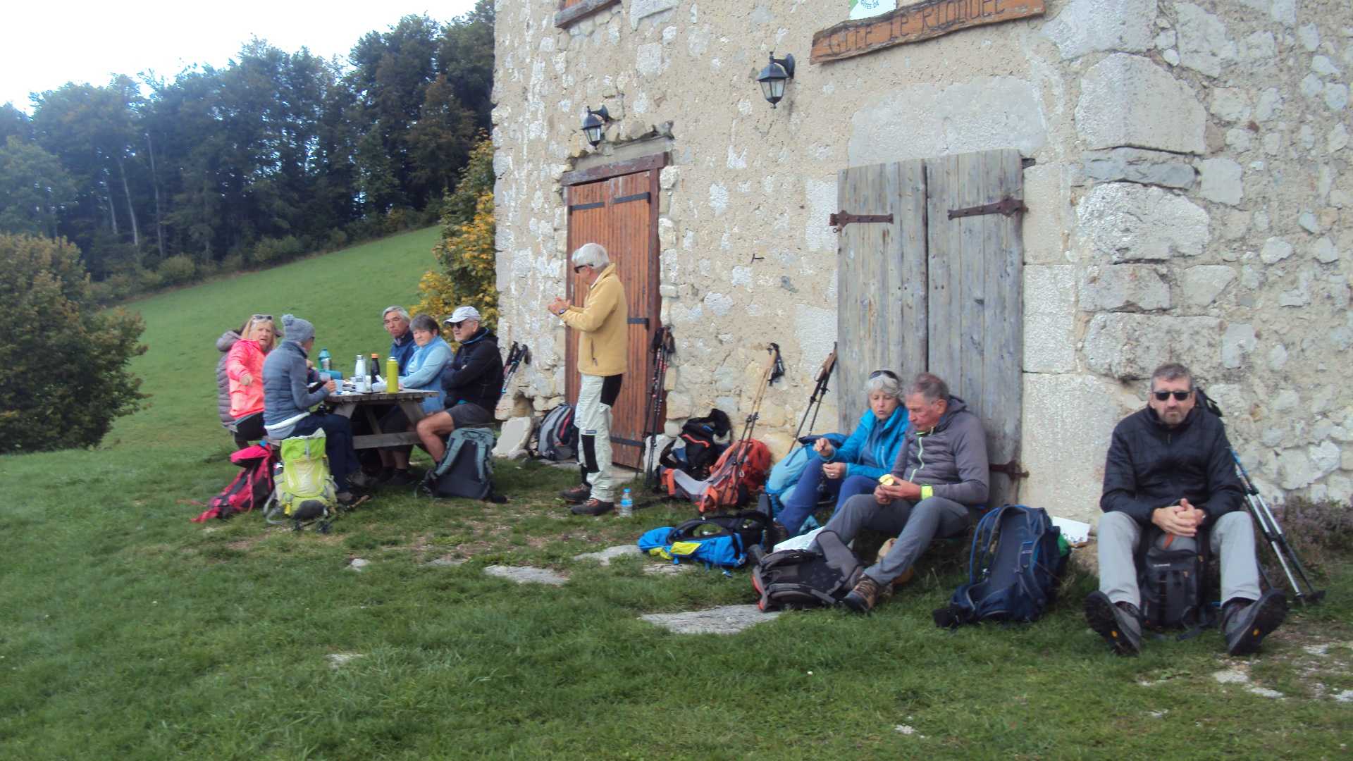 .Nous nous dirigeons vers la ferme du Riondet et allons jusqu’au gite WWF , fermé en cette saison , qui nous offrira sa table de pique nique pour notre repas du midi.