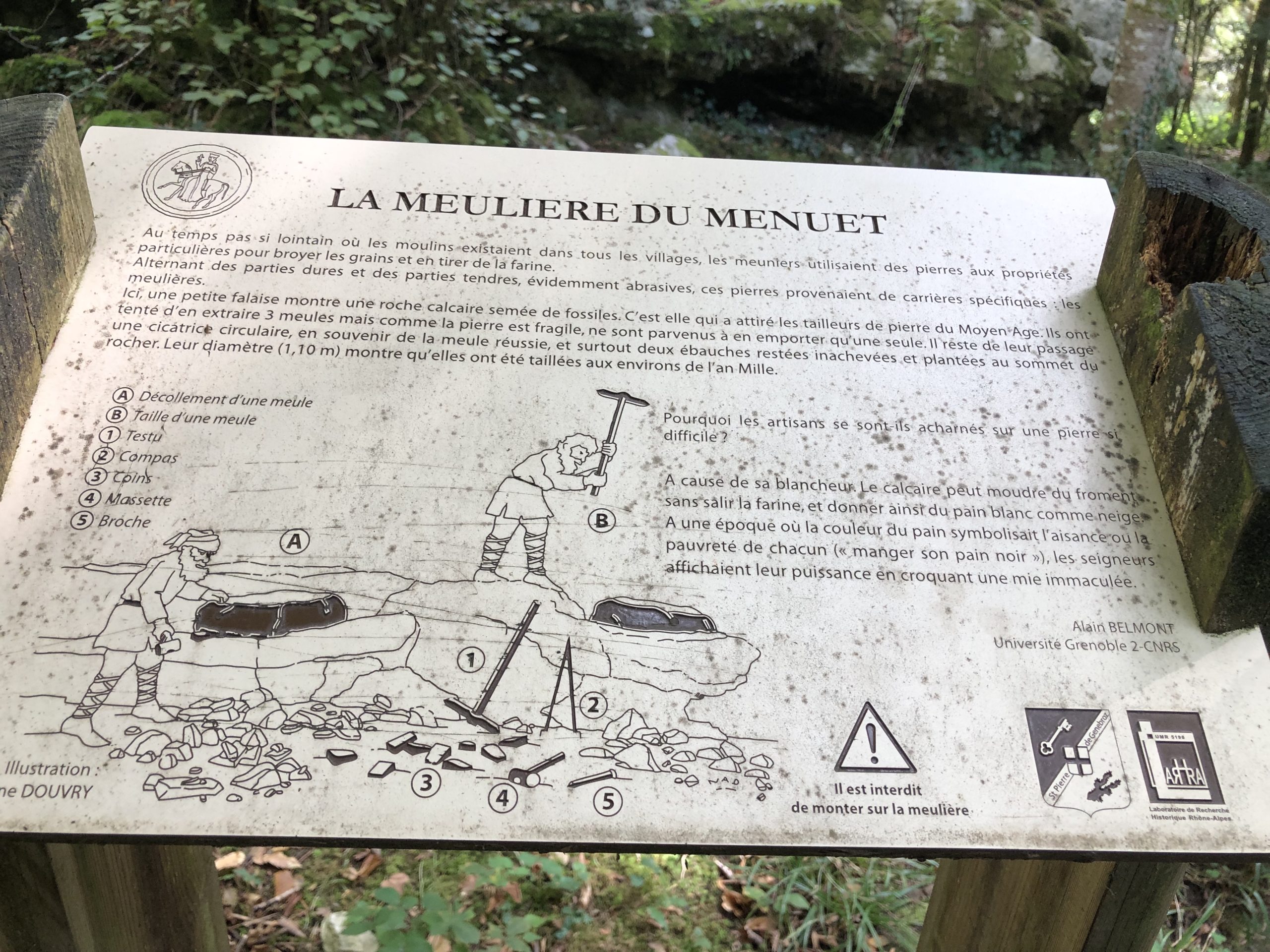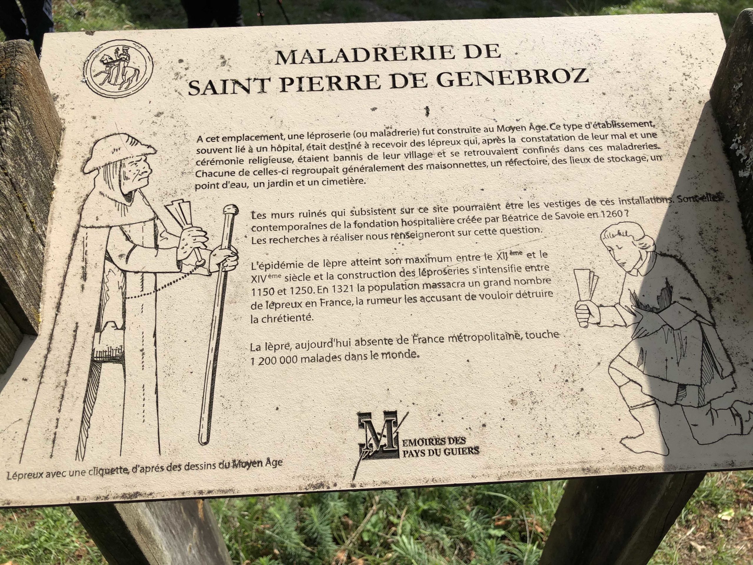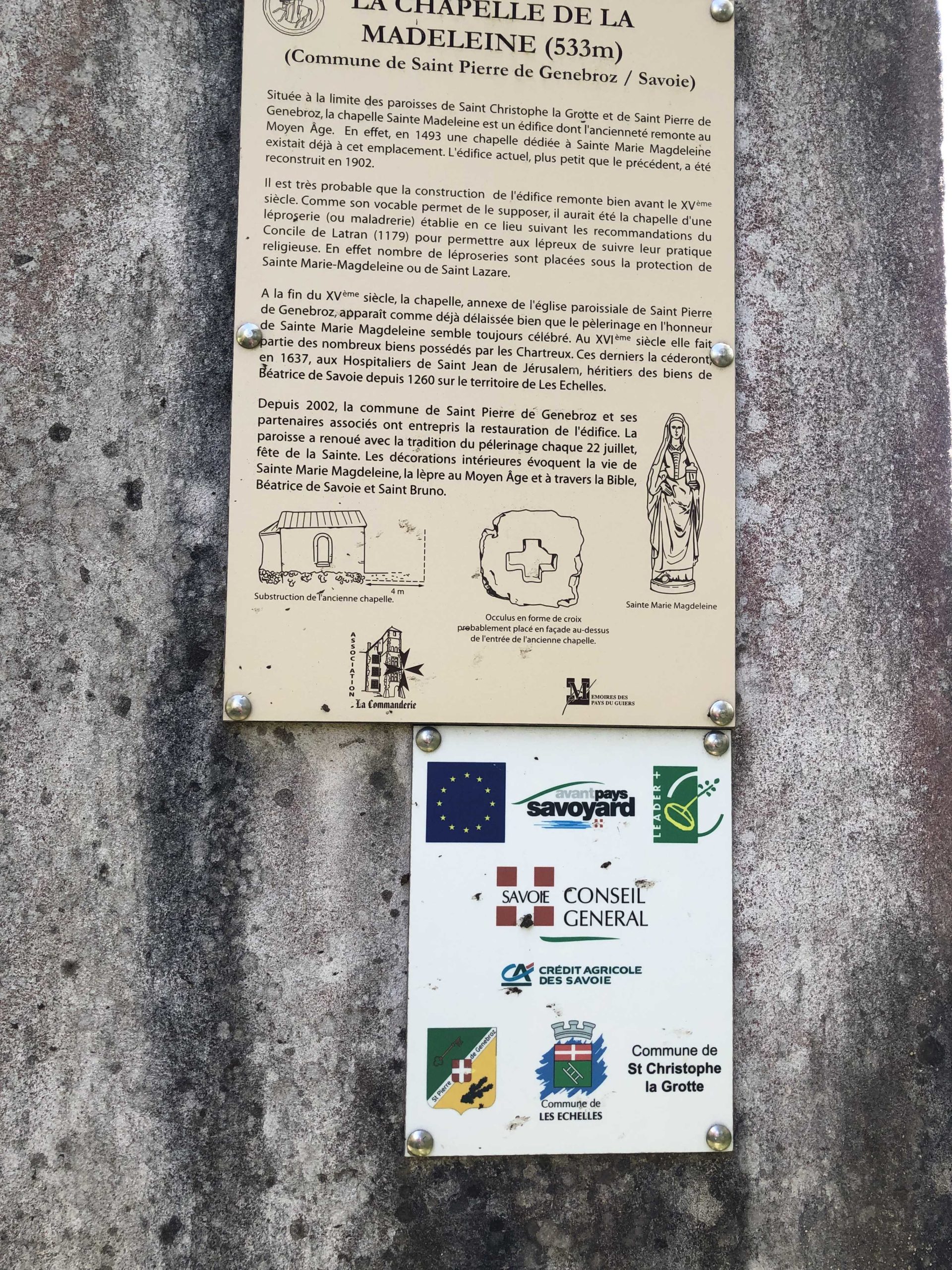 Après cet intermède, nous redescendons vers le site de la » Meulière du Menuet » ( ancienne carrière de meules pour moulins) et notre chemin se poursuit jusqu’à la Chapelle Sainte Madeleine , ancienne maladrerie qui accueillait les lépreux . Elle fut fondée par Béatrice de Savoie (1198 -1265)