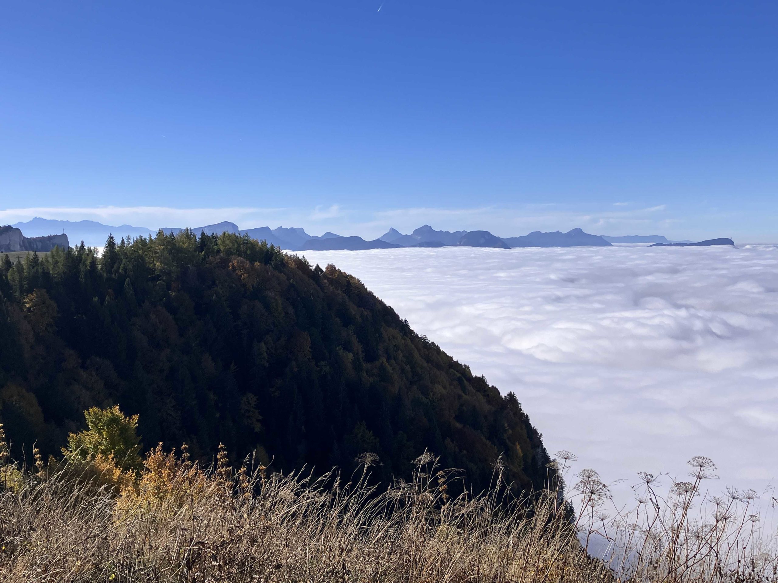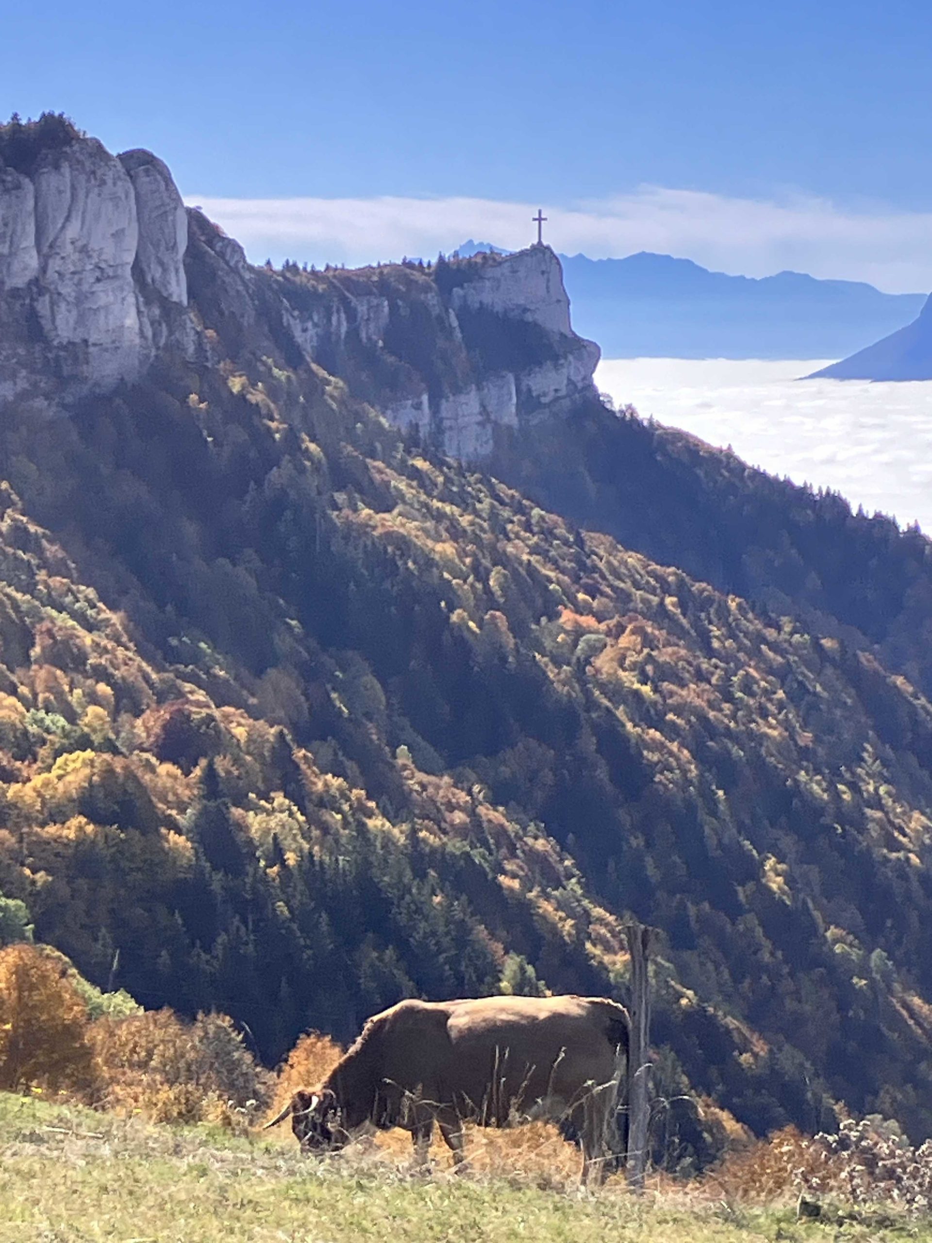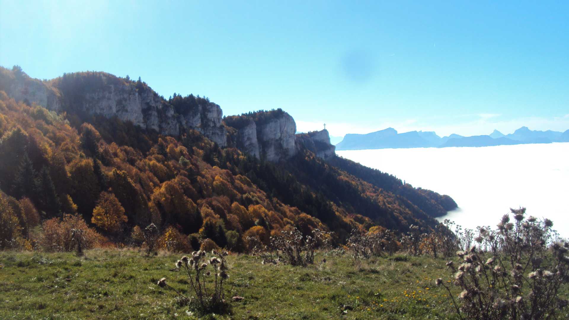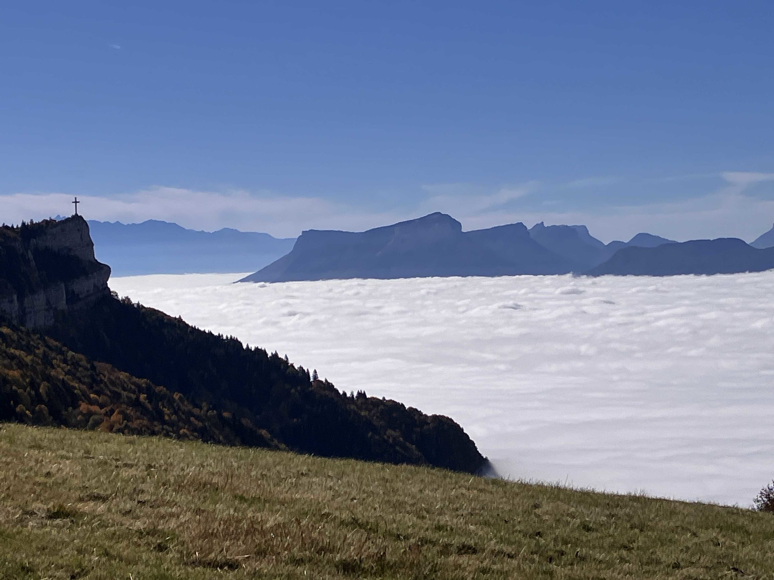 Très belle vue sur la croix du Nivolet située en face de nous.