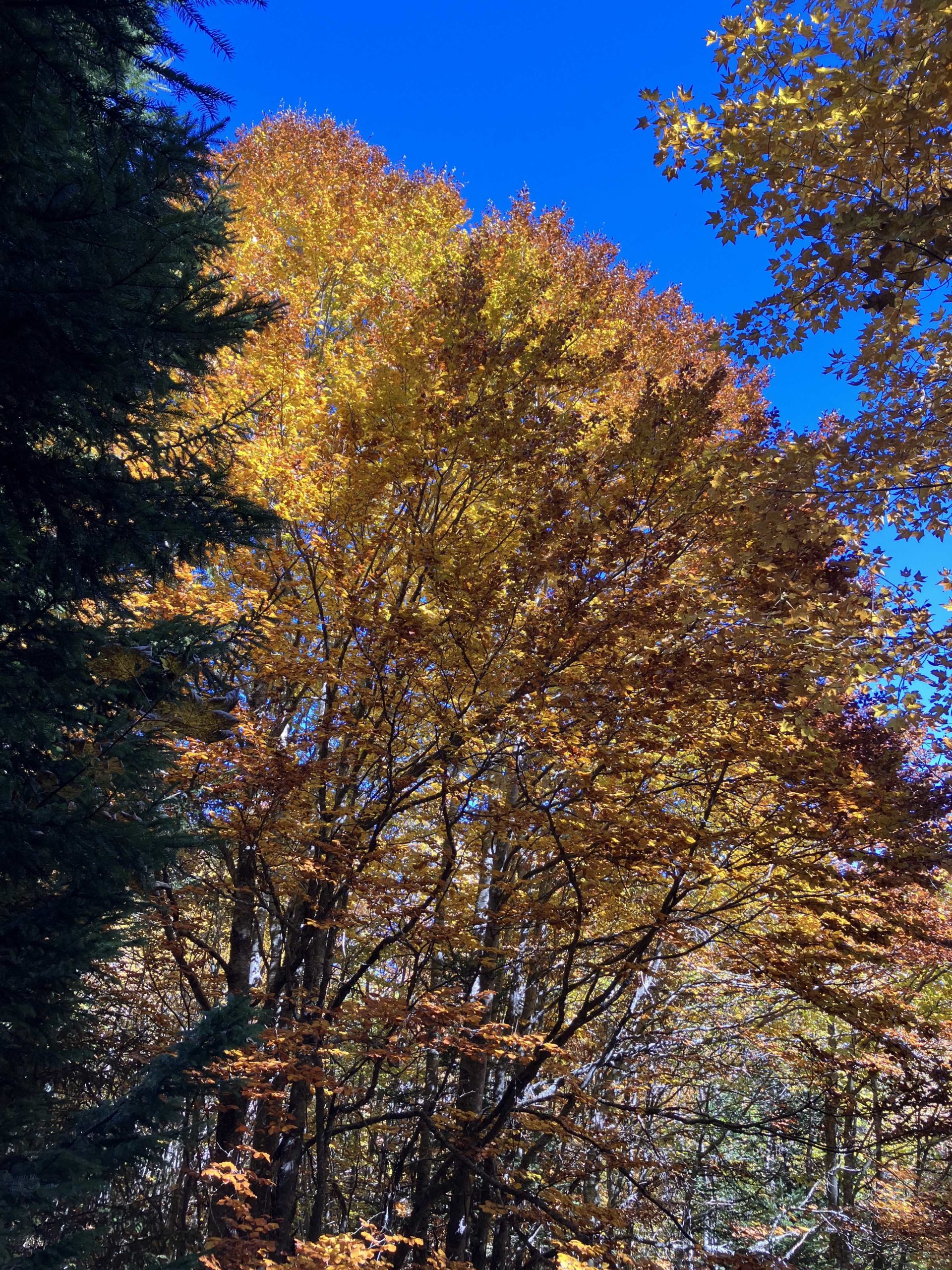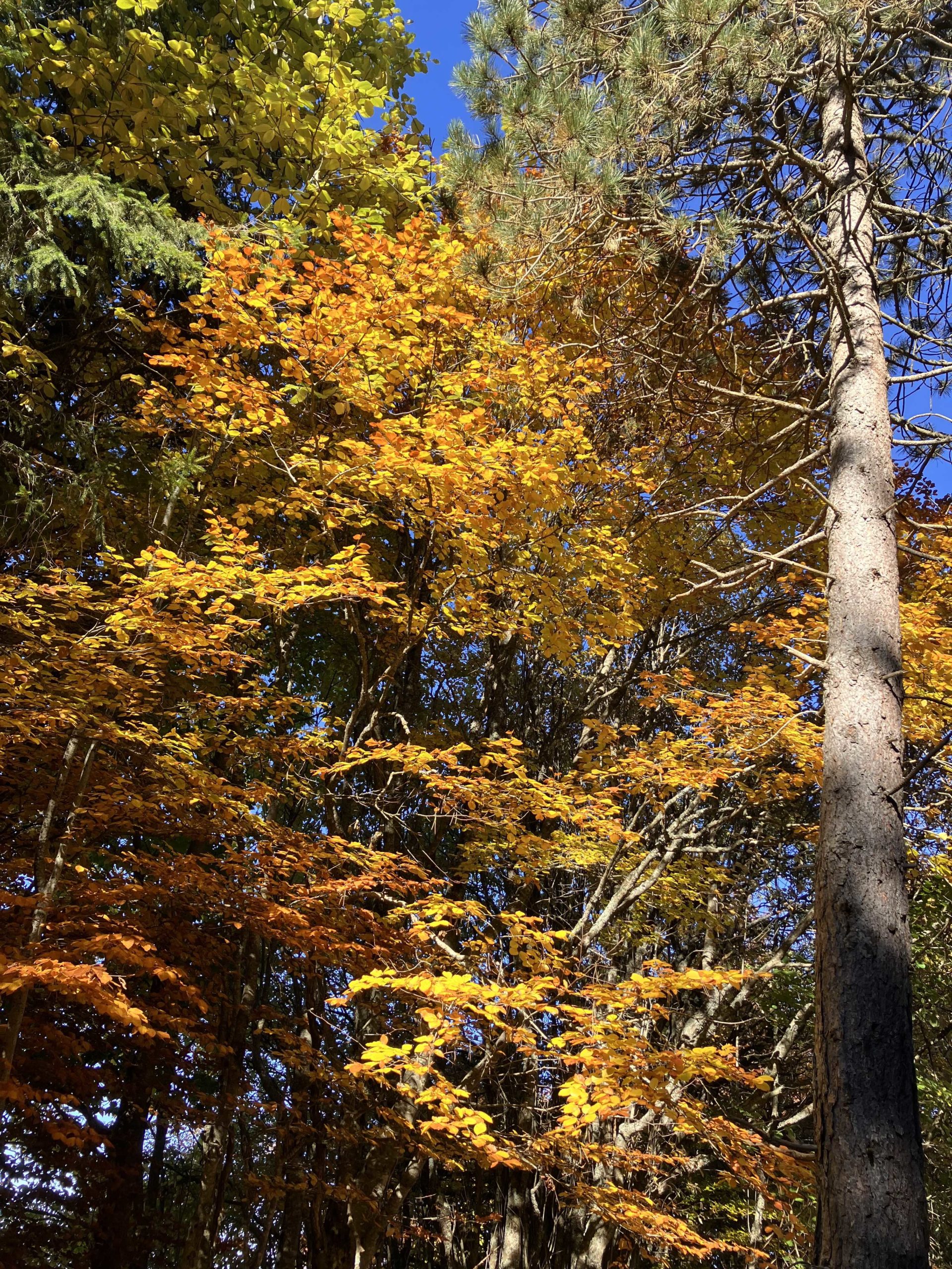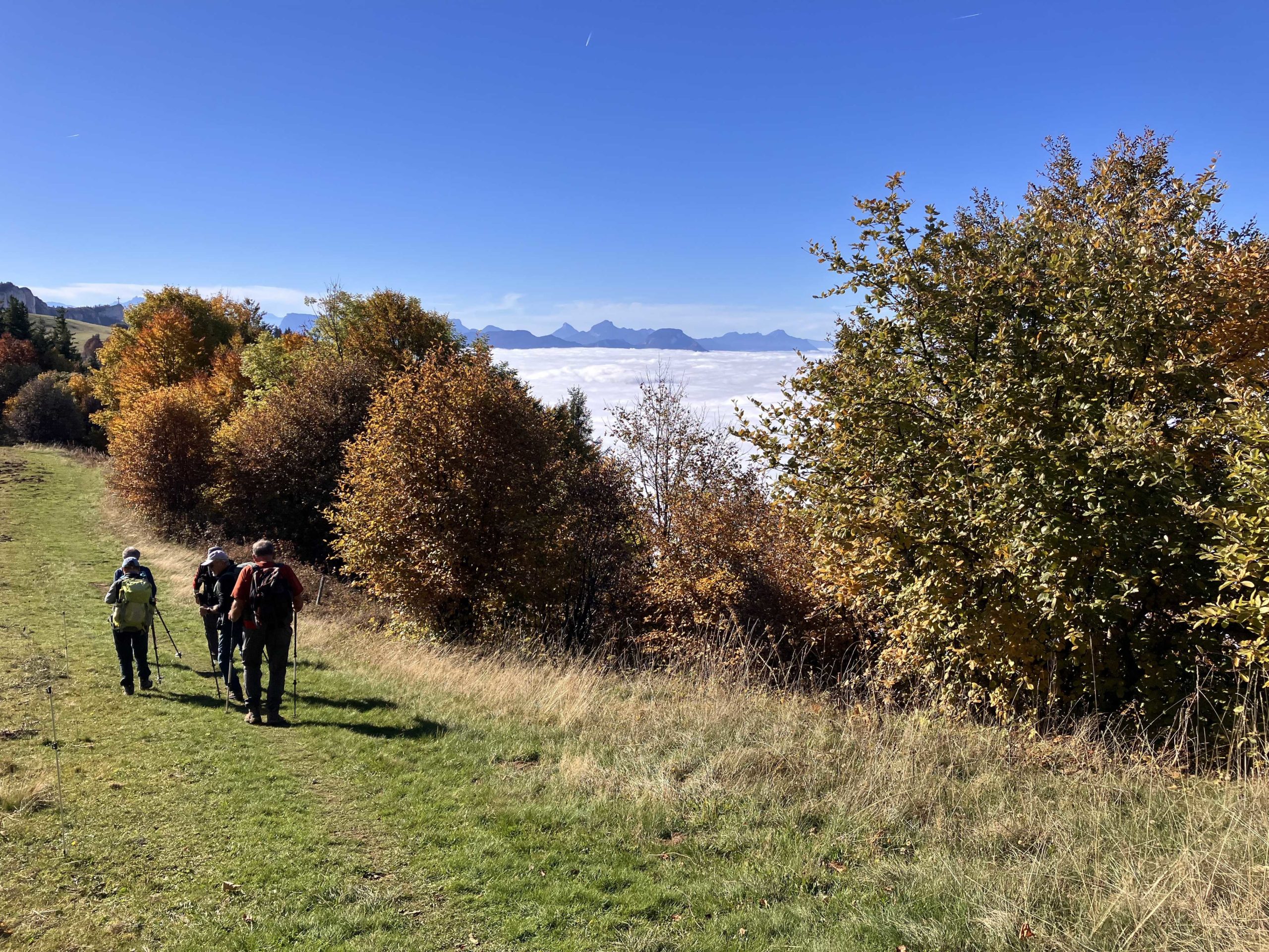Au départ de notre randonnée 1320 m, 11 marcheurs motivés étaient présents pour affronter la première montée vers Orionde sur la piste de ski. Montée sous un soleil radieux avec une végétation automnale luxuriante magnifique.