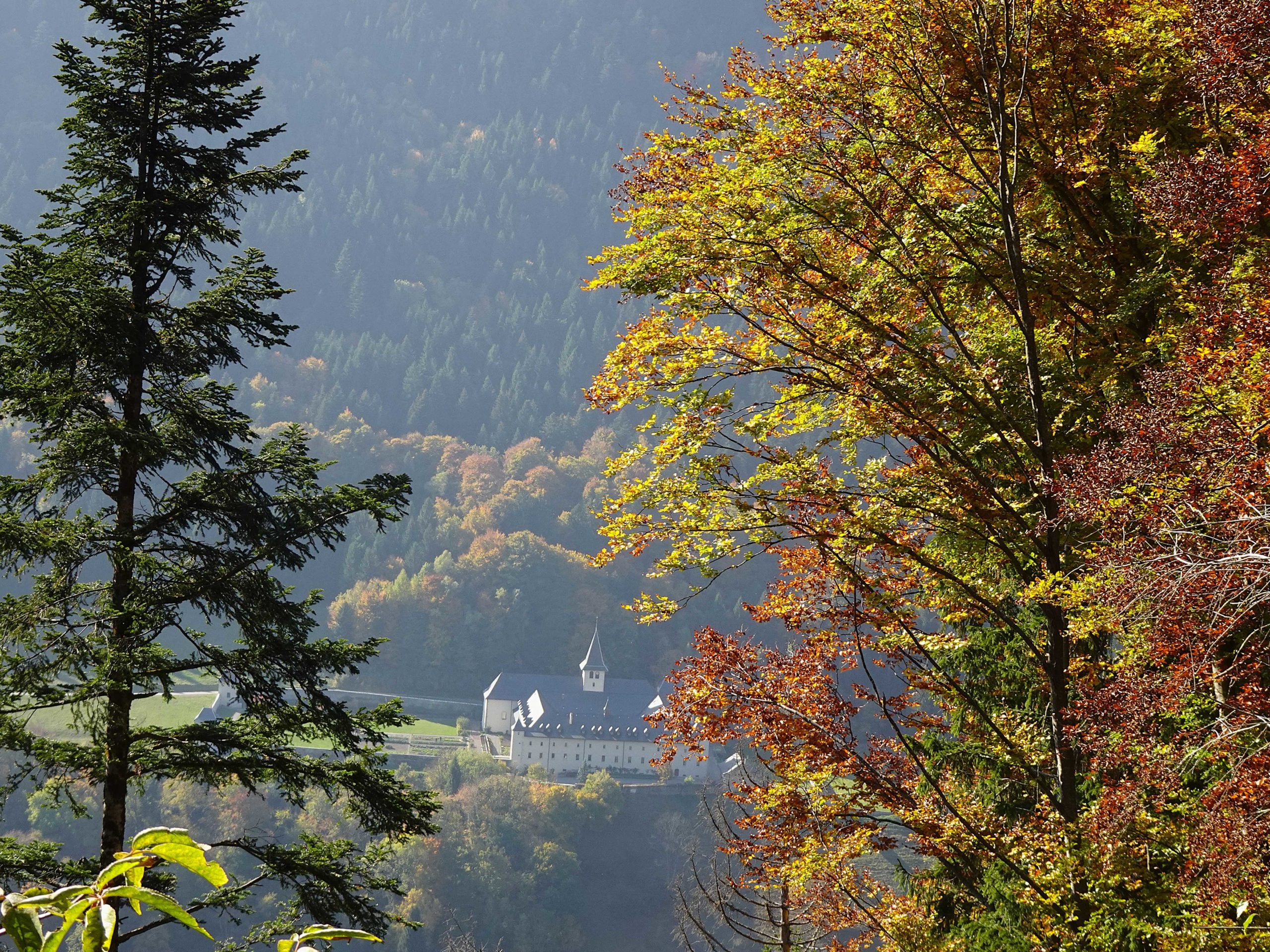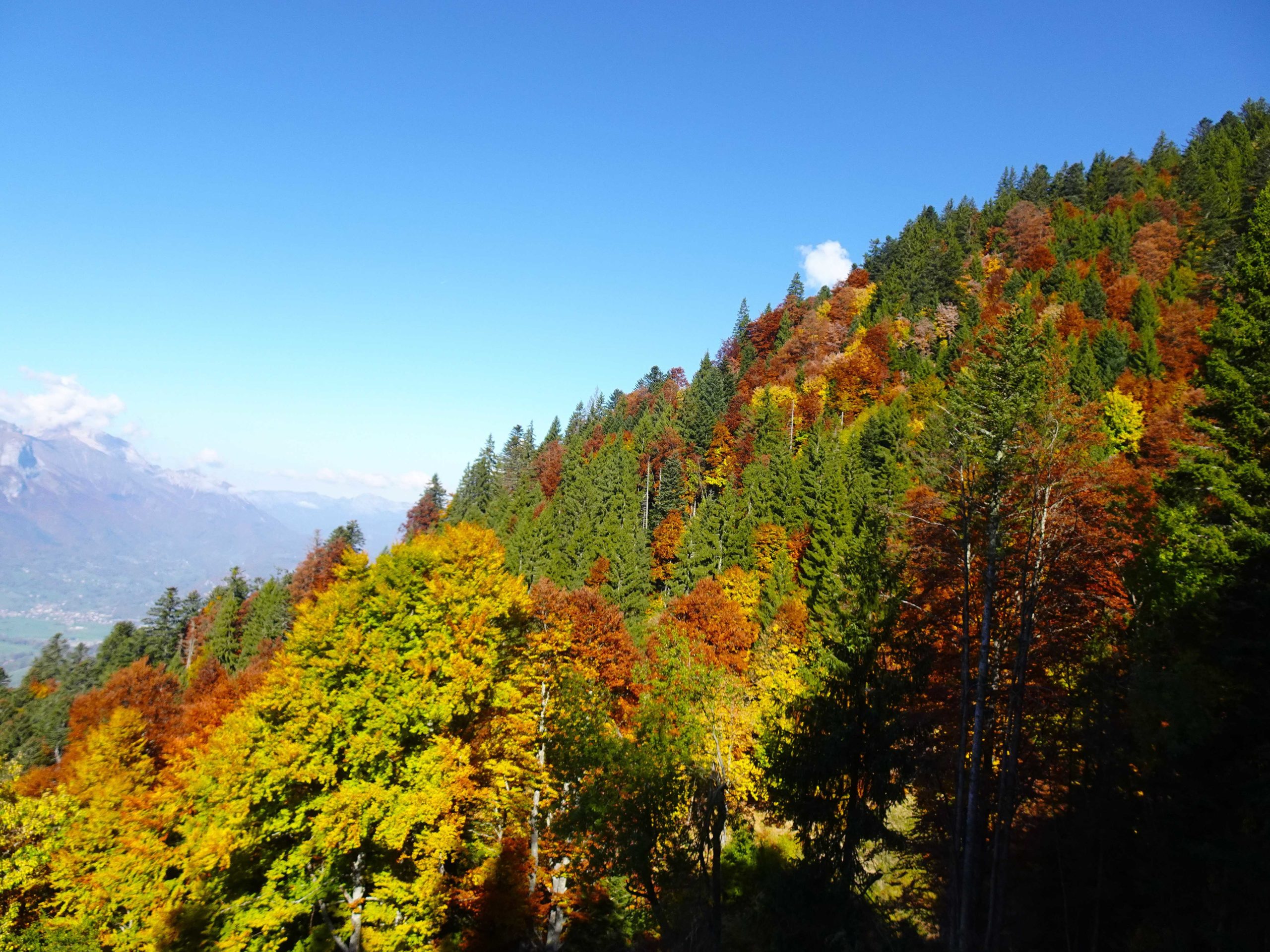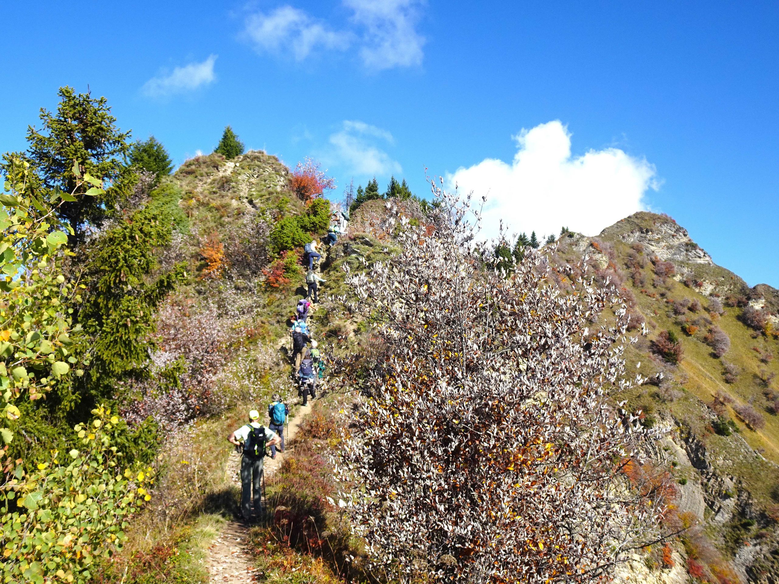 Guidés par Alain, ils nous emmèneront au sommet de la Belle Étoile en direction du col de Tamié dans le massif des Bauges. Au départ du parking Les Teppes (1085m) le sentier s’élève rapidement dans la forêt de Chevron. La montée est soutenue. Parfois de belles fenêtres s’ouvrent sur l’abbaye de Tamié.