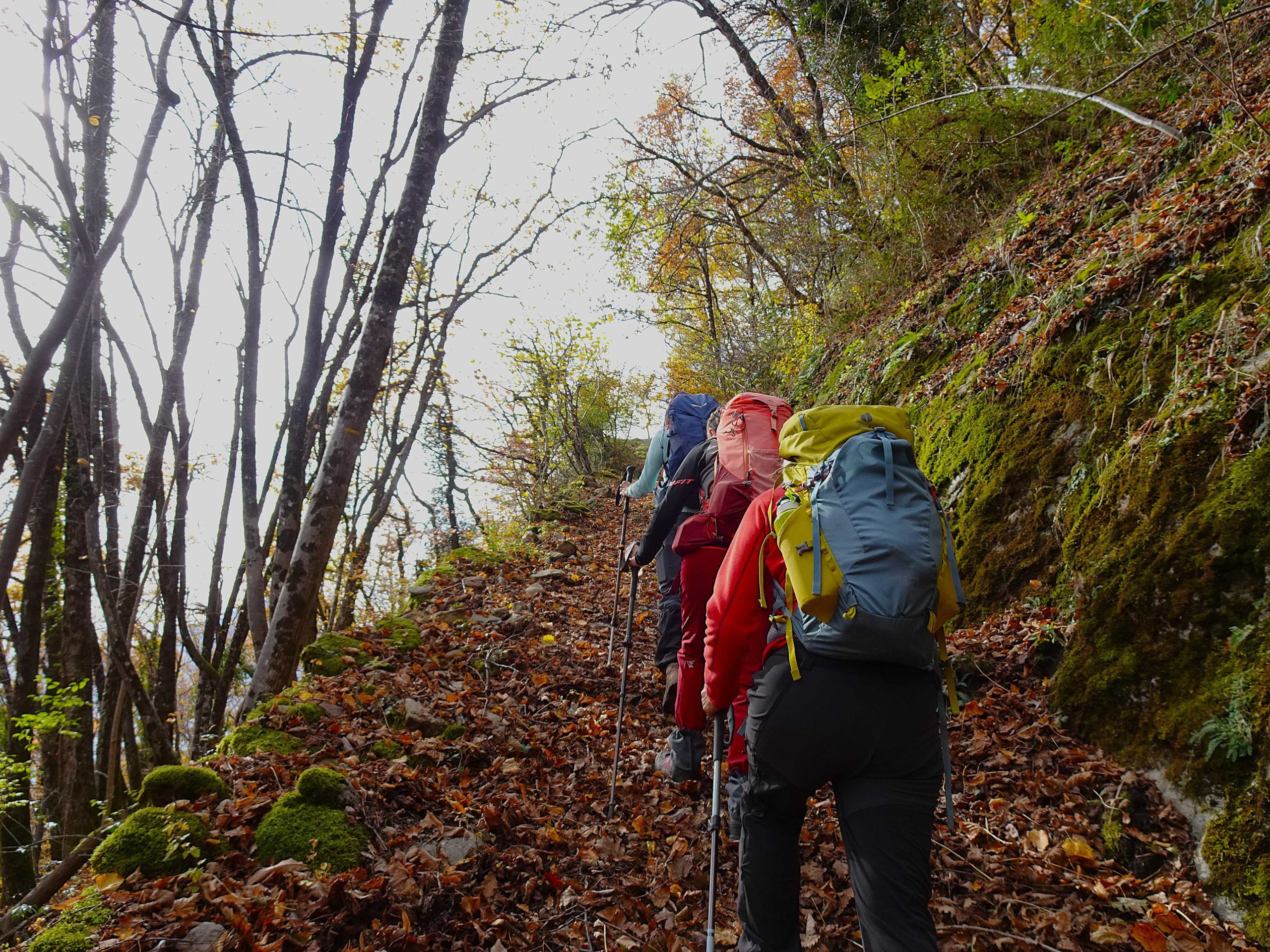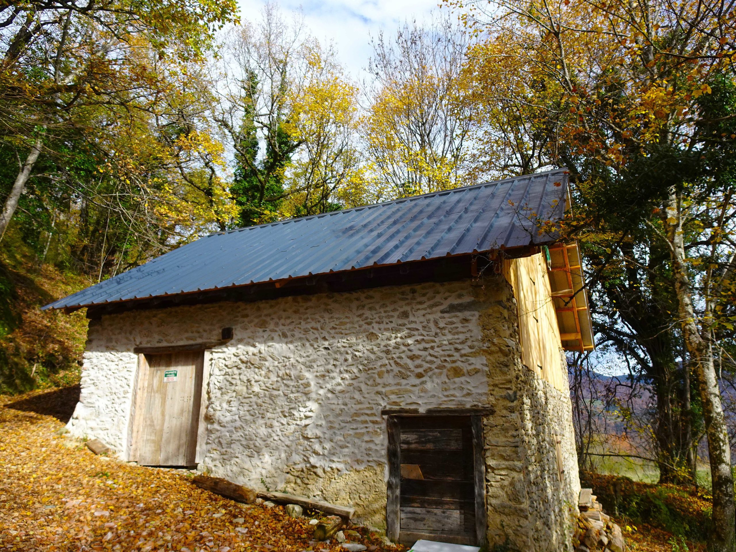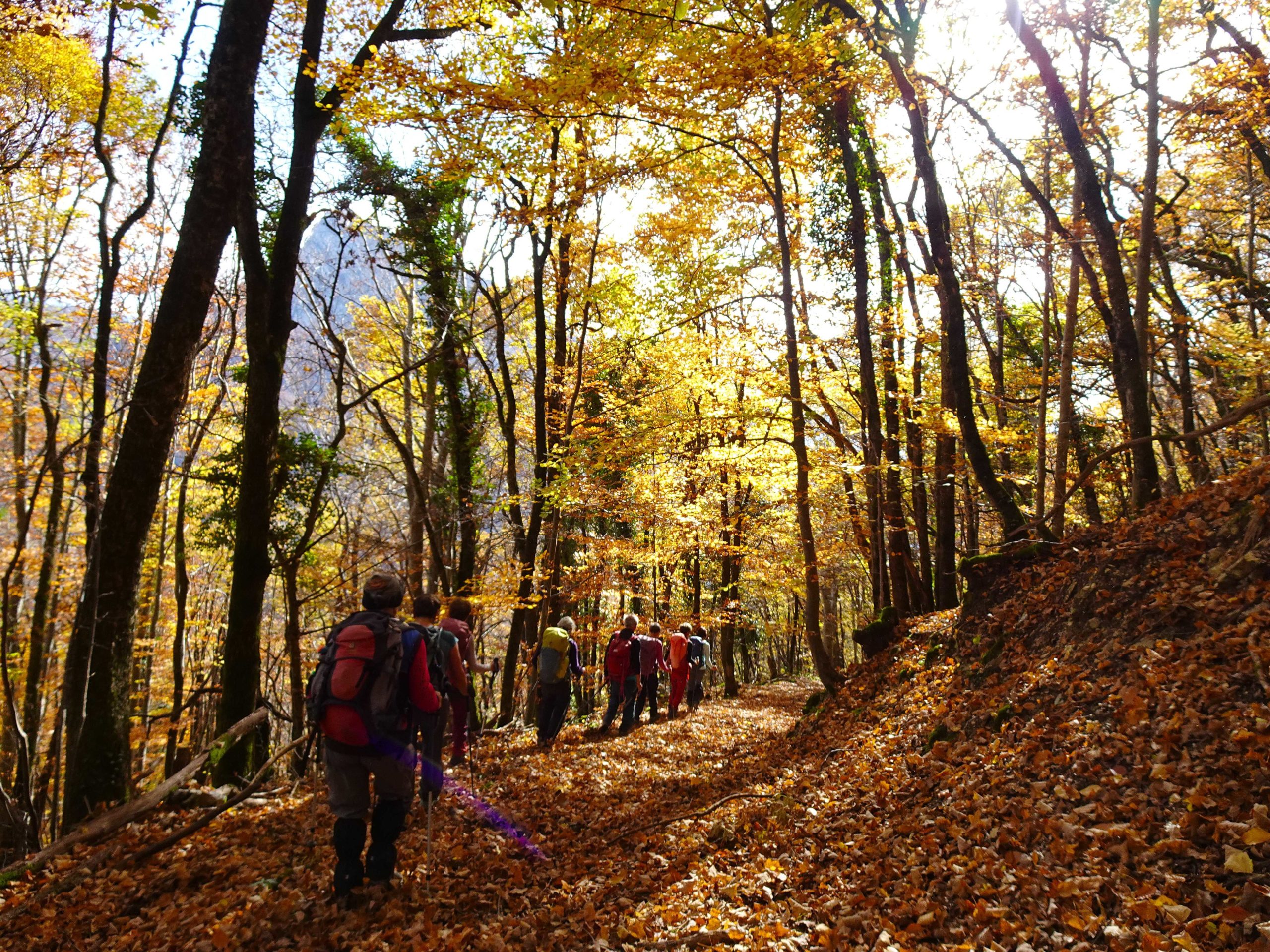 Une rude montée dans une belle forêt automnale , raidillon qui affûte les mollets et ouvre l’appétit – avant de redescendre vers la Grange du Pissou. Nous ne sommes plus très loin de notre objetctif – un petit promontoire – Attention, danger !