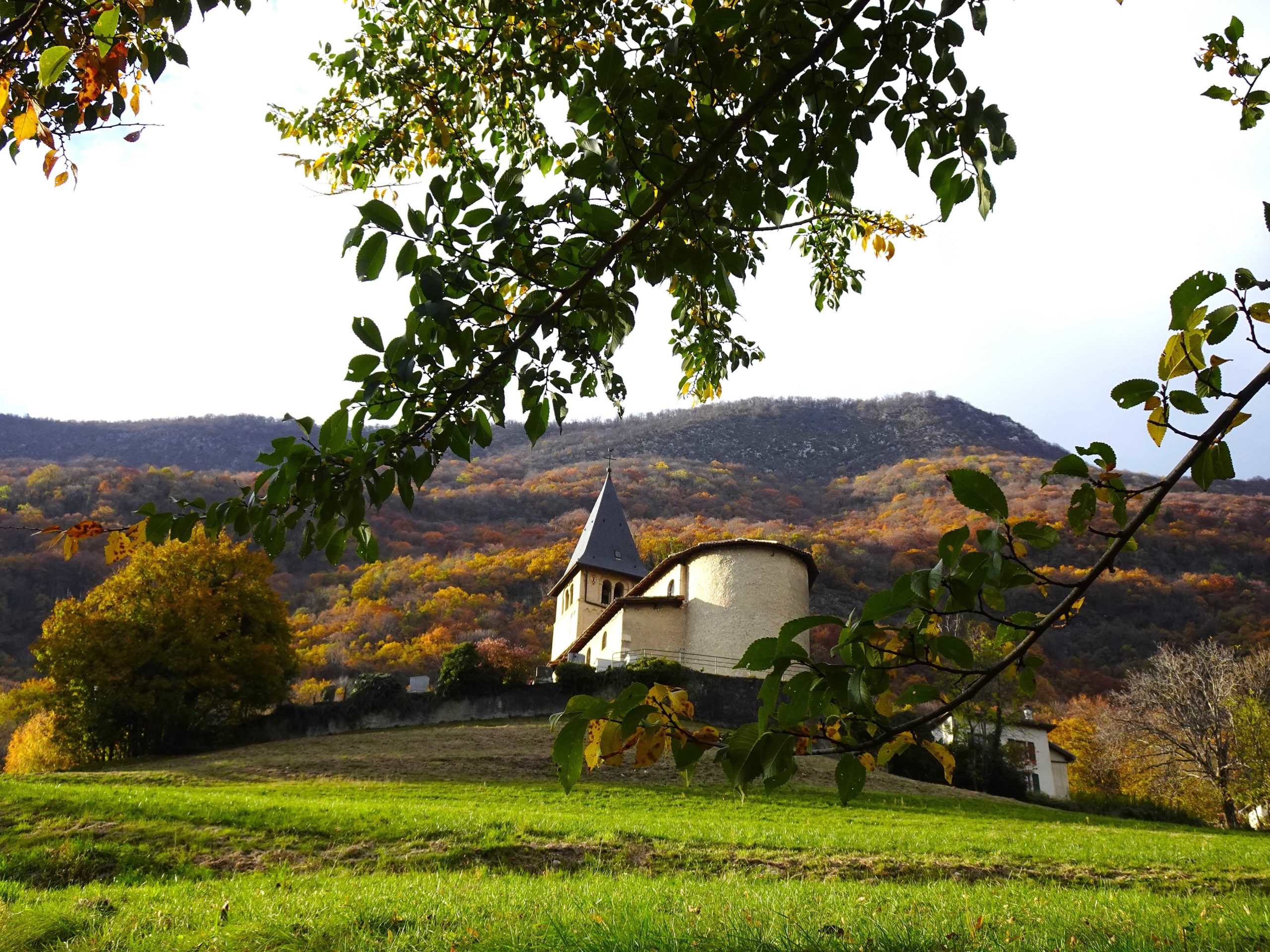 Nous ne nous attarderons pas. Retour par l’Eglise de Proveysieux puis par l’agréable sentier des Peintres, menant aux ruines du moulin de Brieux et à la passerelle du Tenaison…Merci pour cette belle idée, Mi-Mi. Occasion de franchir quelques obstacles (arbres couchés) et montrer sa souplesse ! Puis la route qui nous ramènera aux voitures.