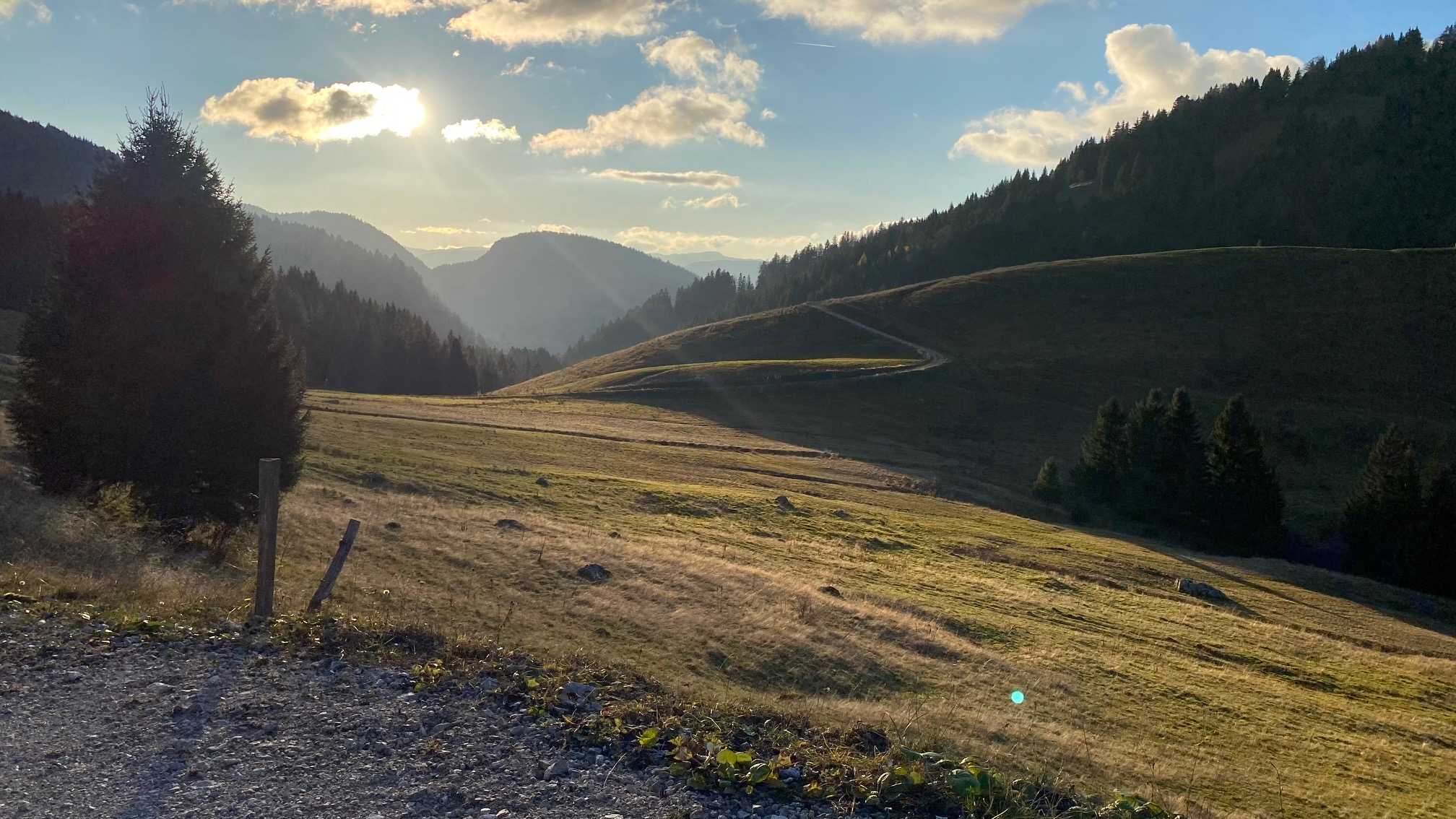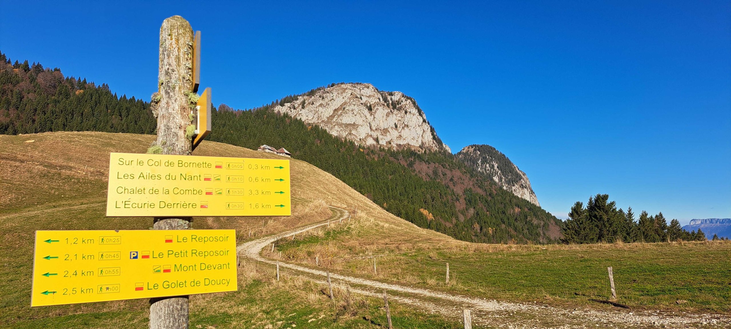 La mise en jambe commence par une large piste qui nous mène jusqu’à l’ancien parking du Reposoir d’où, il y a encore quelques années, démarrait la randonnée.