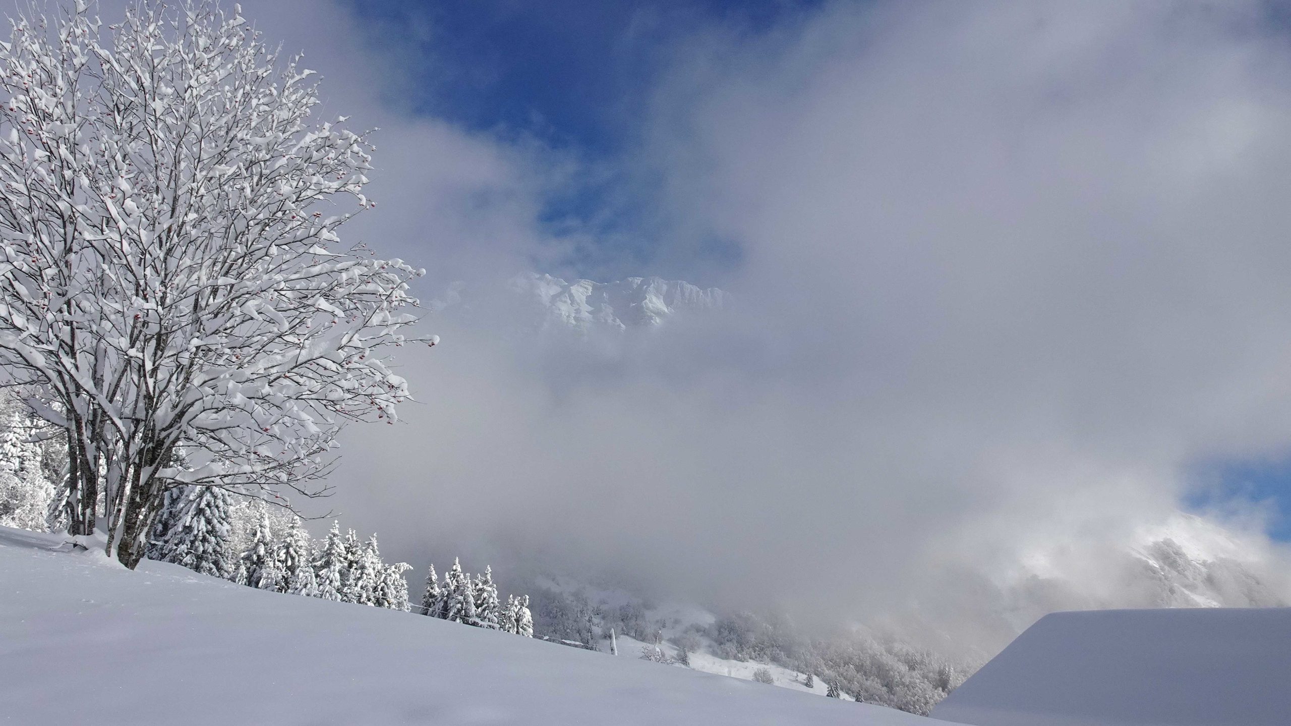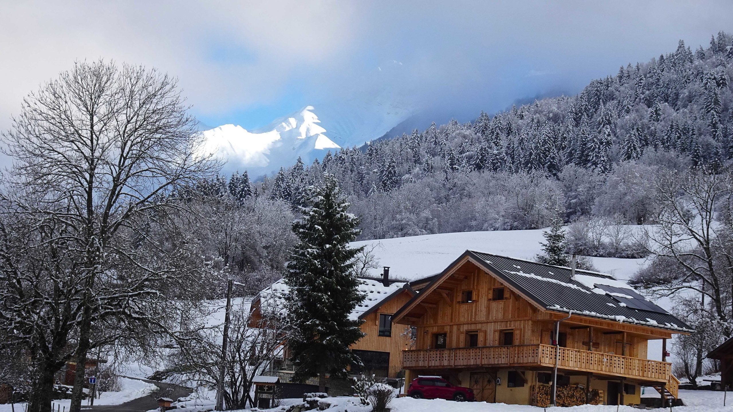 C’est notre première sortie raquettes !! dans les Bauges au départ du hameau de Coudray un peu après le village de Jarsy.
