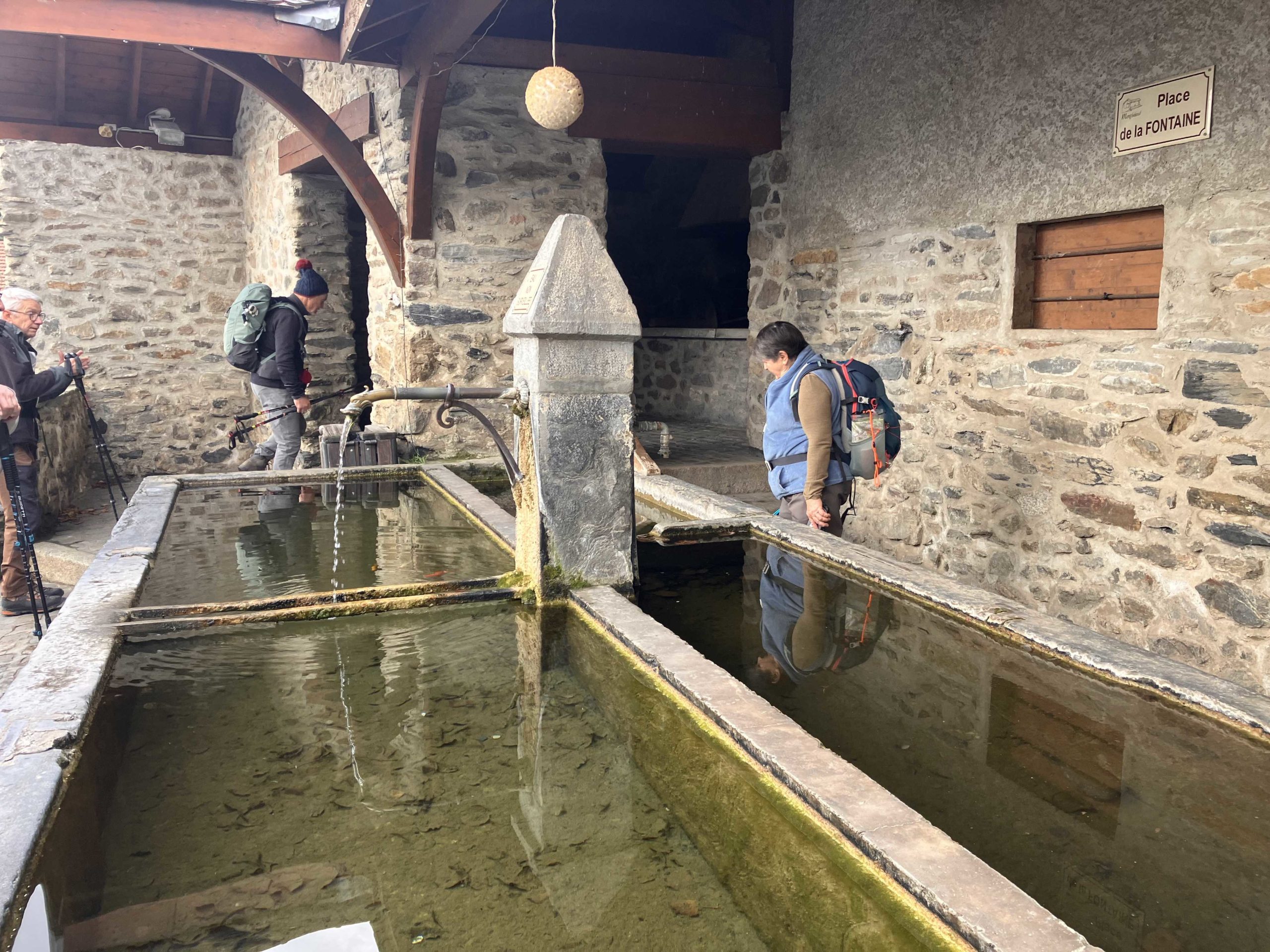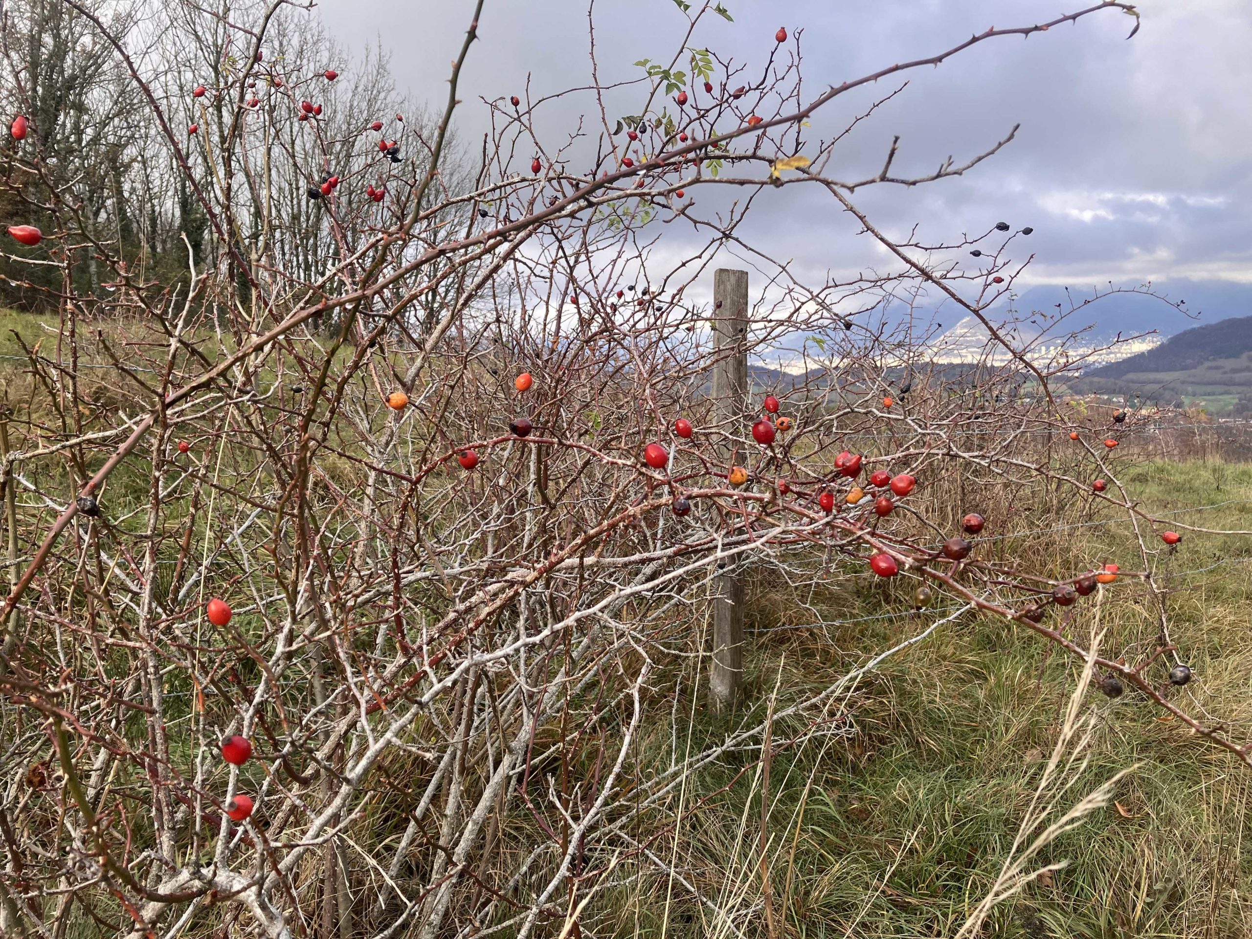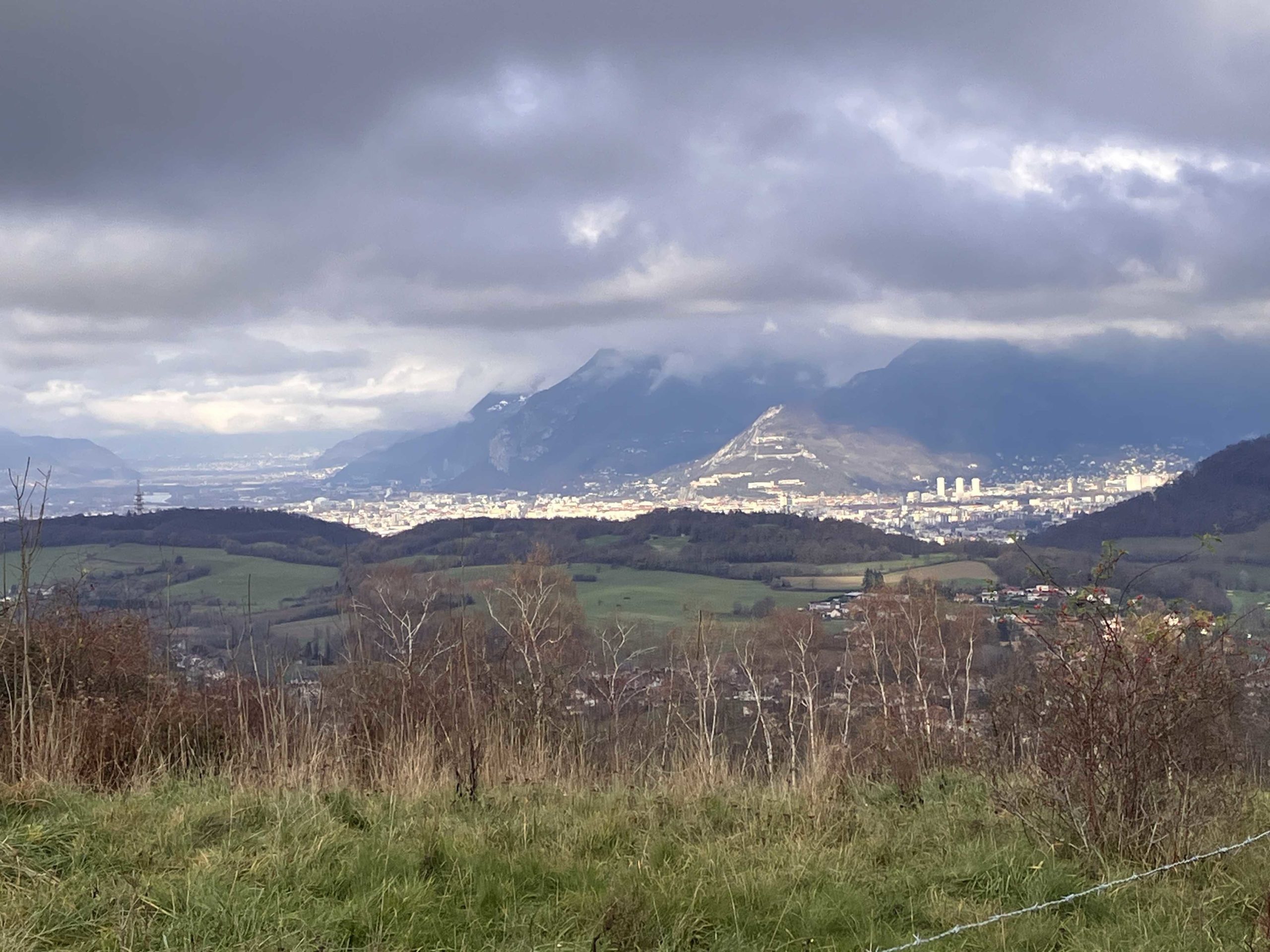 Jusque-là le chemin bien empierré se fait facilement et la vue du côté Belledonne se fait plus lointaine. L’apparition d’un timide soleil nous met de bonne humeur. Cependant, impossible de se poser pour le repas dans les prés sur les hauteurs du village : bien trop humide ,aussi nous poursuivons vers Bon Repos en espérant des bancs .