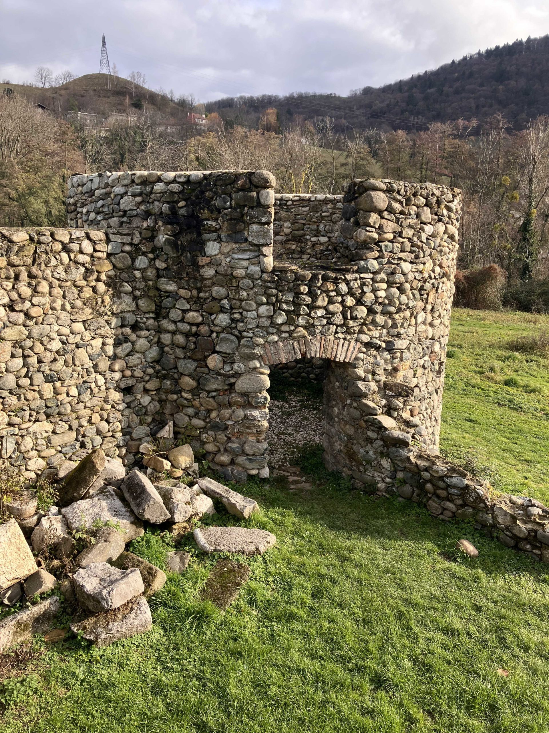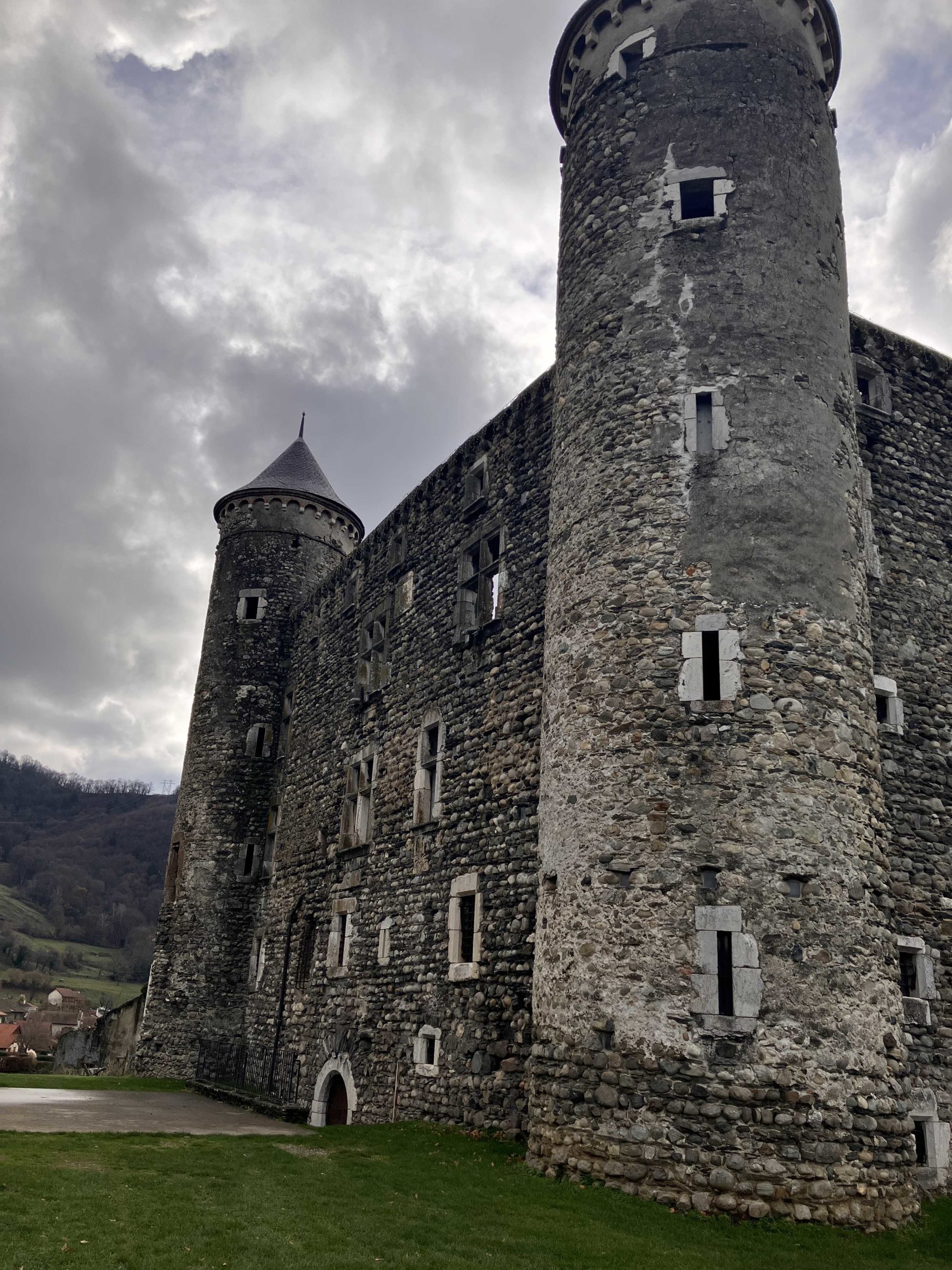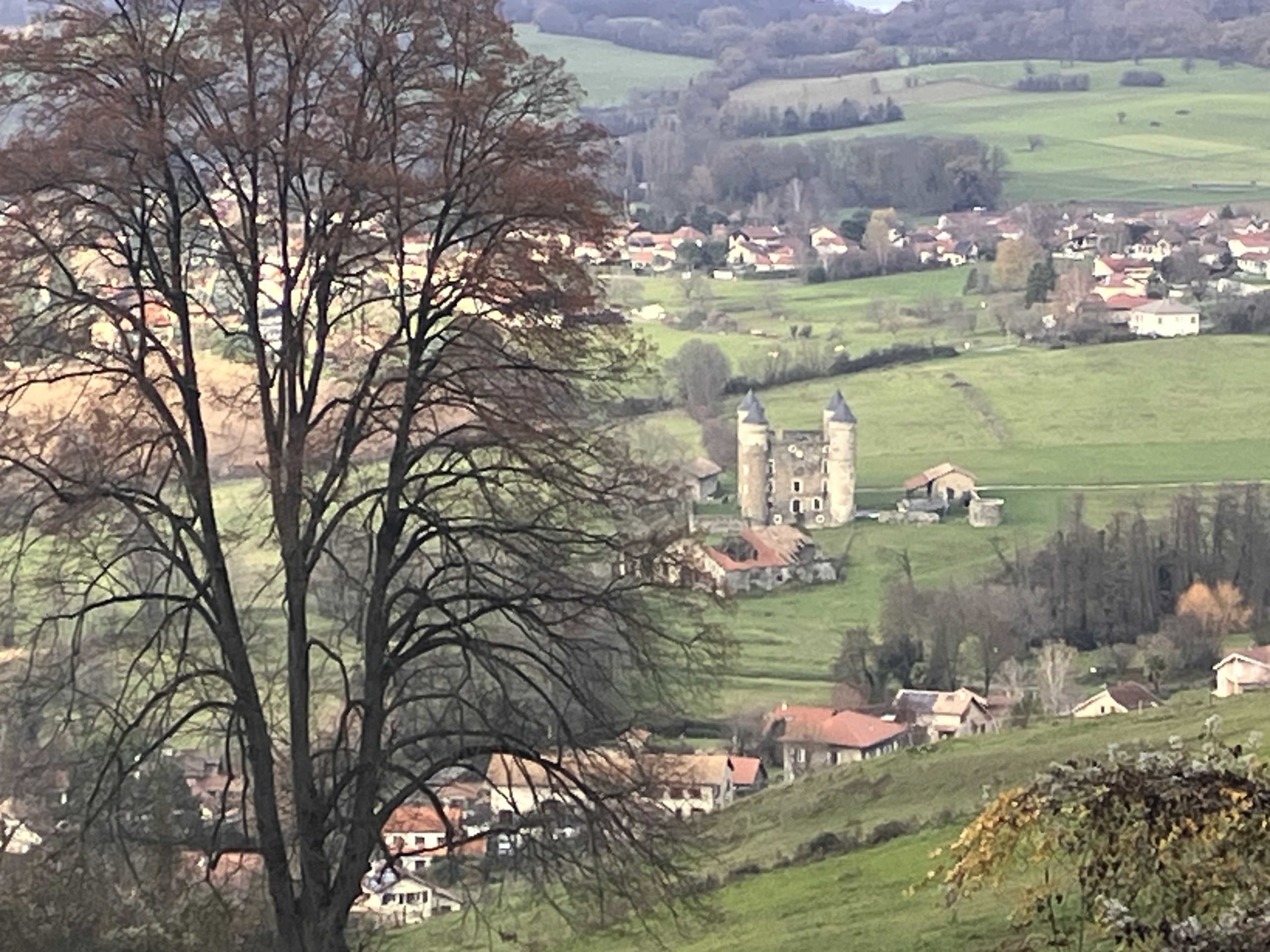 A vol d’oiseaux le château n’est plus loin, mais le chemin descendant dans la combe est particulièrement glissant et gadouilleux à souhait. Ouf ! pas de chute, mais une glissade masculine bien récupérée !