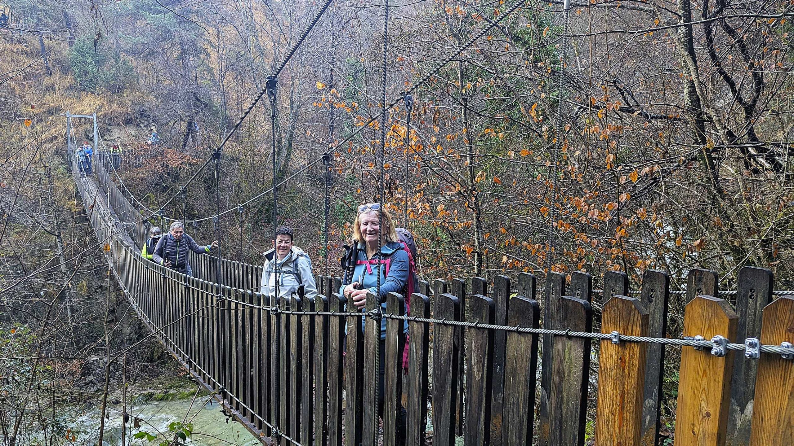 Avant la pause de midi nous descendons dans les gorges de la Leysse pour arriver sur quelques jolis points de vue et la fameuse passerelle sur laquelle quelques téméraires iront faire un aller-retour afin de tester solidité,