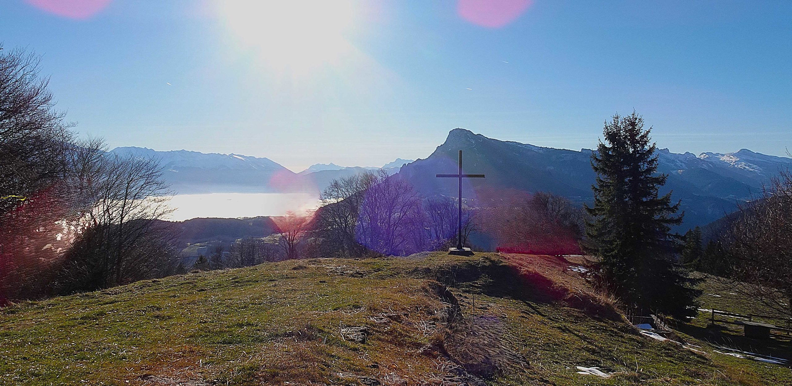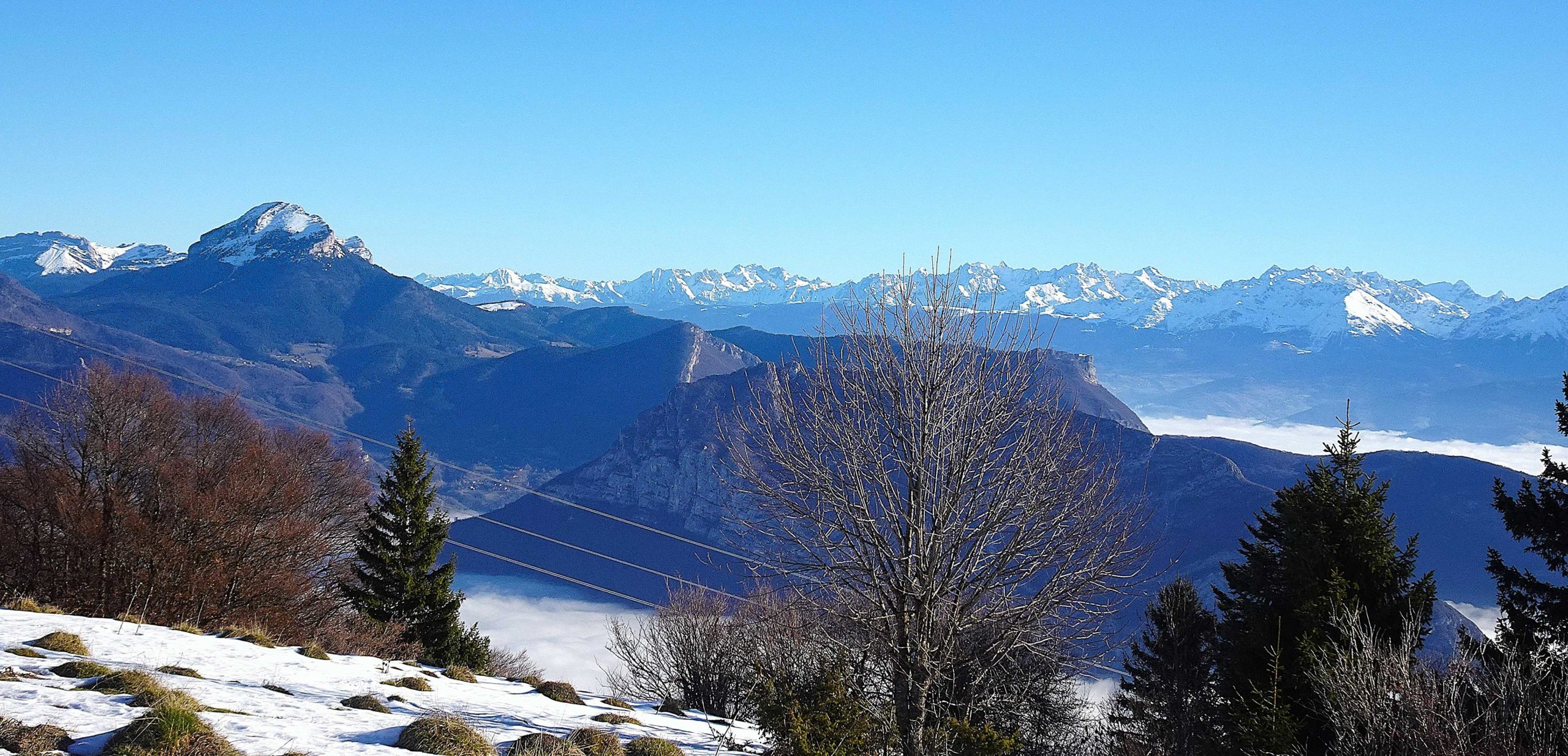 A partir de ce moment, à nous les grands espaces du plateau de Sornin nous offrant une superbe vue sur les sommets de Chartreuse et Belledonne. Nous continuons en direction de la Dent du Loup, attention au grand vide surplombant la vallée de l’Isère, zoom sur les plus grands sommets de la Chartreuse, mais déplorant ces horribles pylônes haute tension et ces câbles traversant.