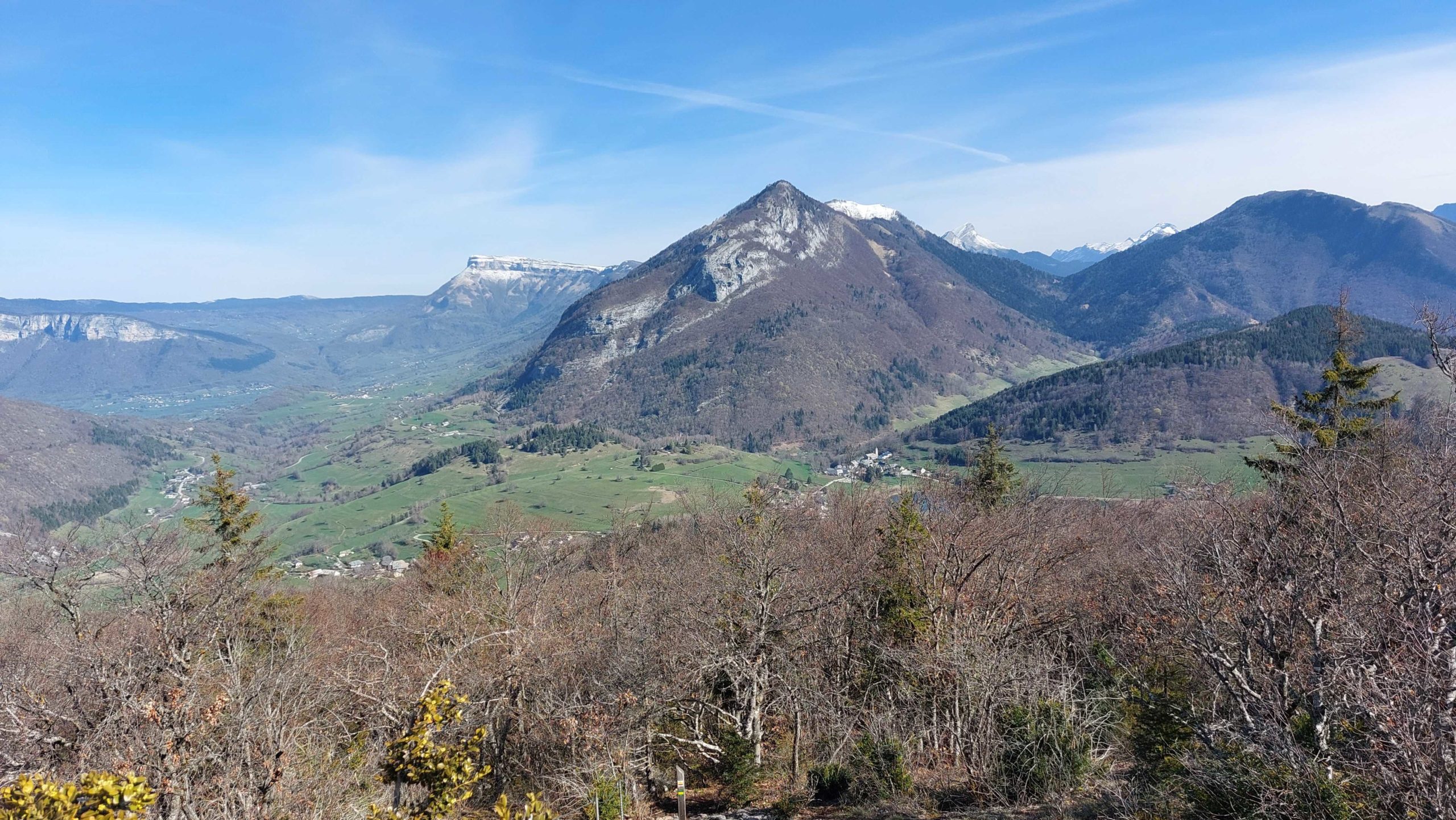 Notre troupe s’étire d’abord sur la petite route qui traverse le petit et pittoresque village de La Thuile. Nous suivons les berges du lac puis nous nous élevons rapidement et rejoignons le Rocher Manettaz à 1065m. De là nous contemplons un magnifique panorama et surplombons la ville de Montmélian. Après un passage délicat en bord de falaise, nous arrivons au Rocher du Guet à 1209 m.