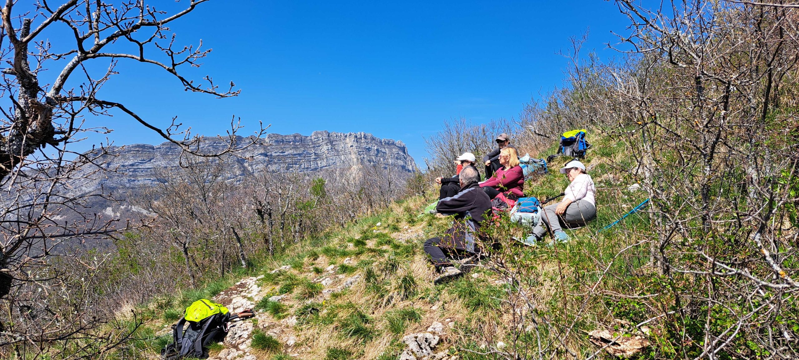 Le point de vue est impressionnant ! Nous retournerons sur nos pas et c’est sur le chemin de crêtes, un peu avant la croix du mont Rachais que nous croiserons le groupe et les randonneurs…Le but visé : s‘installer sur le belvédère au-dessus de Grenoble, du Synchrotron, du Drac, de l’Isère et face au Vercors… De quoi à observer pendant un bon moment et raviver les souvenirs d’antan pour une partie du groupe !