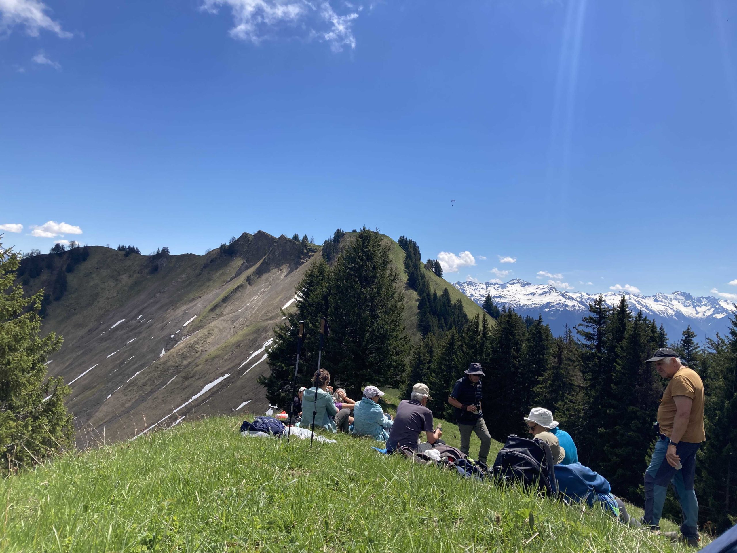 Pour changer, nous rentrons par la Combe Noire et Plan du Tour, photo groupe au totem de la forêt de Tamié, puis retour au-dessus de l’Abbaye. Petit arrêt pour Sophie pour son fameux Tamié !