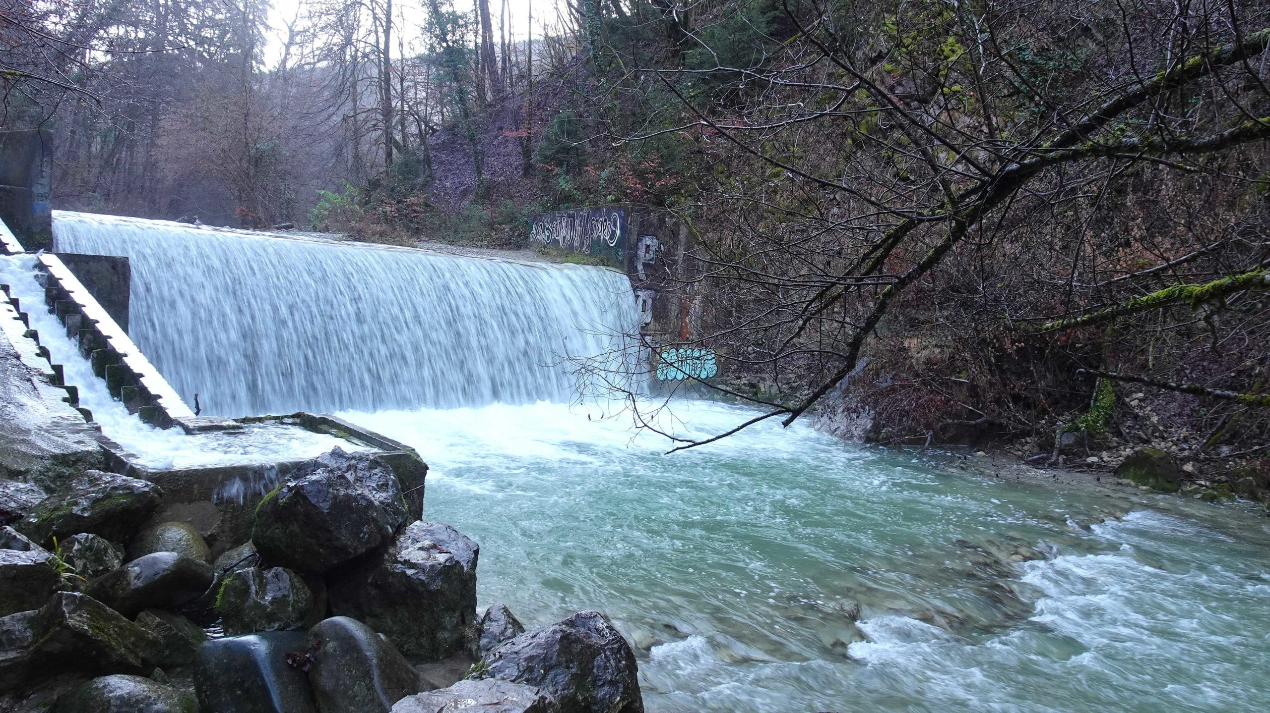 Nous garons les véhicules près d’un ancien moulin situé à la confluence de la Doria et de la Leysse,