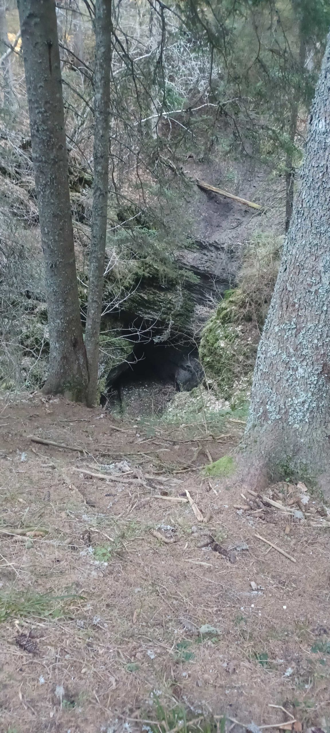 Retour par une boucle qui commence par une descente bien abrupte. Il se poursuit par une visite au « trou de l’enfer », excavations impressionnantes, puis par des pistes enneigées voir gelées et on observe quelques glissades sans gravité !