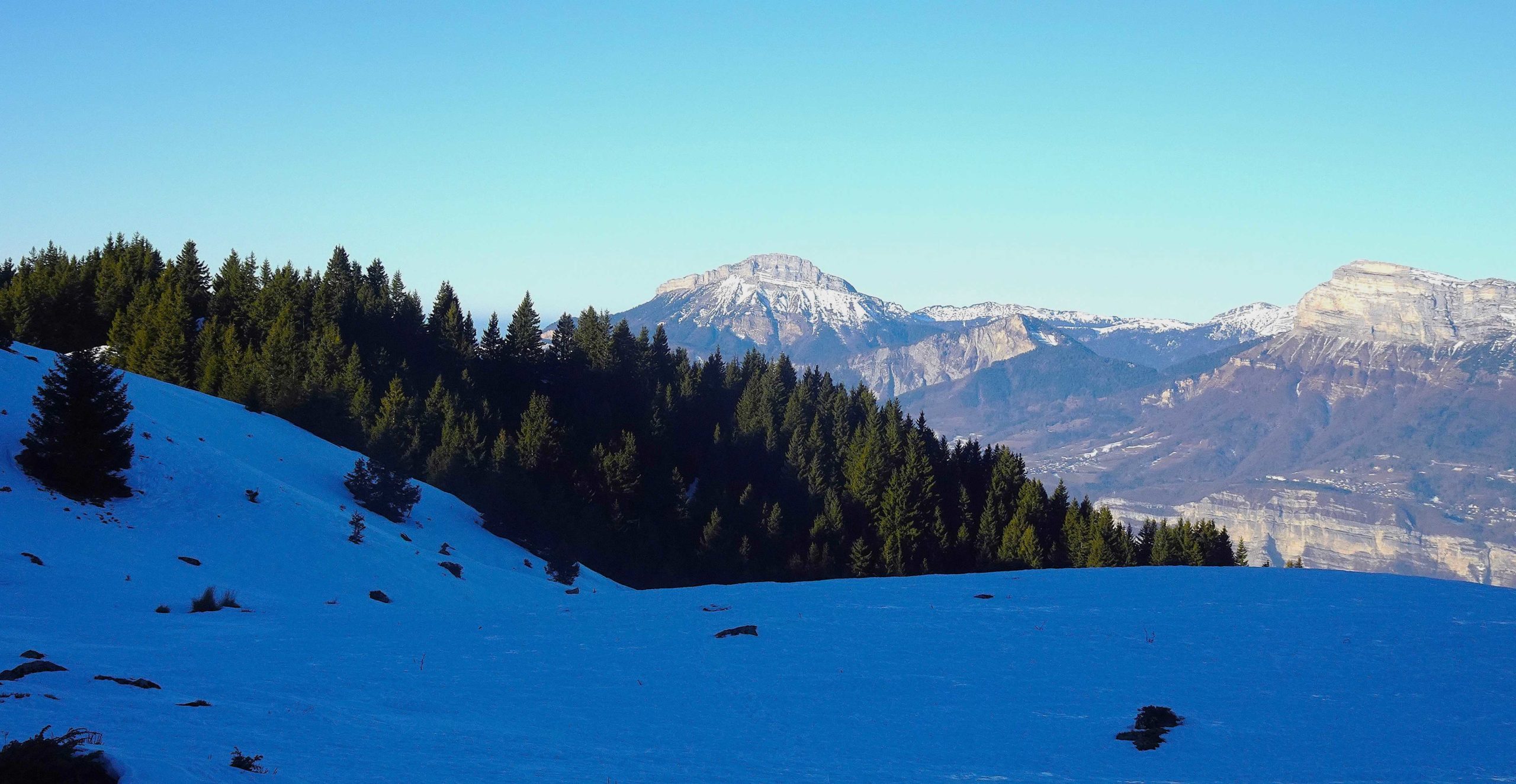 C’est 13 personnes qui se retrouvent au parking de Pipay pour ce qui est annoncé comme une sortie gentiment digestive. La météo est parfaite avec la couche de pollution de la cuvette Grenobloise bien présente l’hiver. On monte dans la forêt avant de rejoindre les Alpages et retrouver les massifs qui nous sont tellement familiers et qu’on contemple toujours avec le même plaisir. On passe par le chalet de Pincerie bien rempli en cette période de congés scolaires en dépit d’une neige peu abondante, et surtout maintenant très ancienne, mais que les experts du service des pistes arrivent à sublimer pour la rendre douce. Ascension du Roc du Boeuf pour le picnic et redescente au parking où jamais les raquettes ne nous auront manqué.
