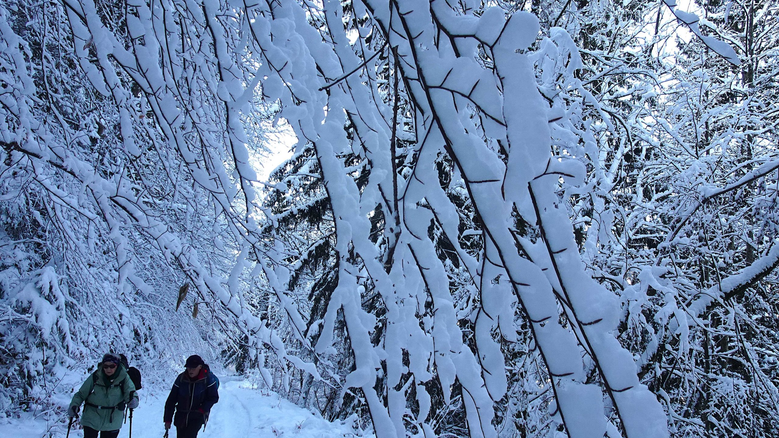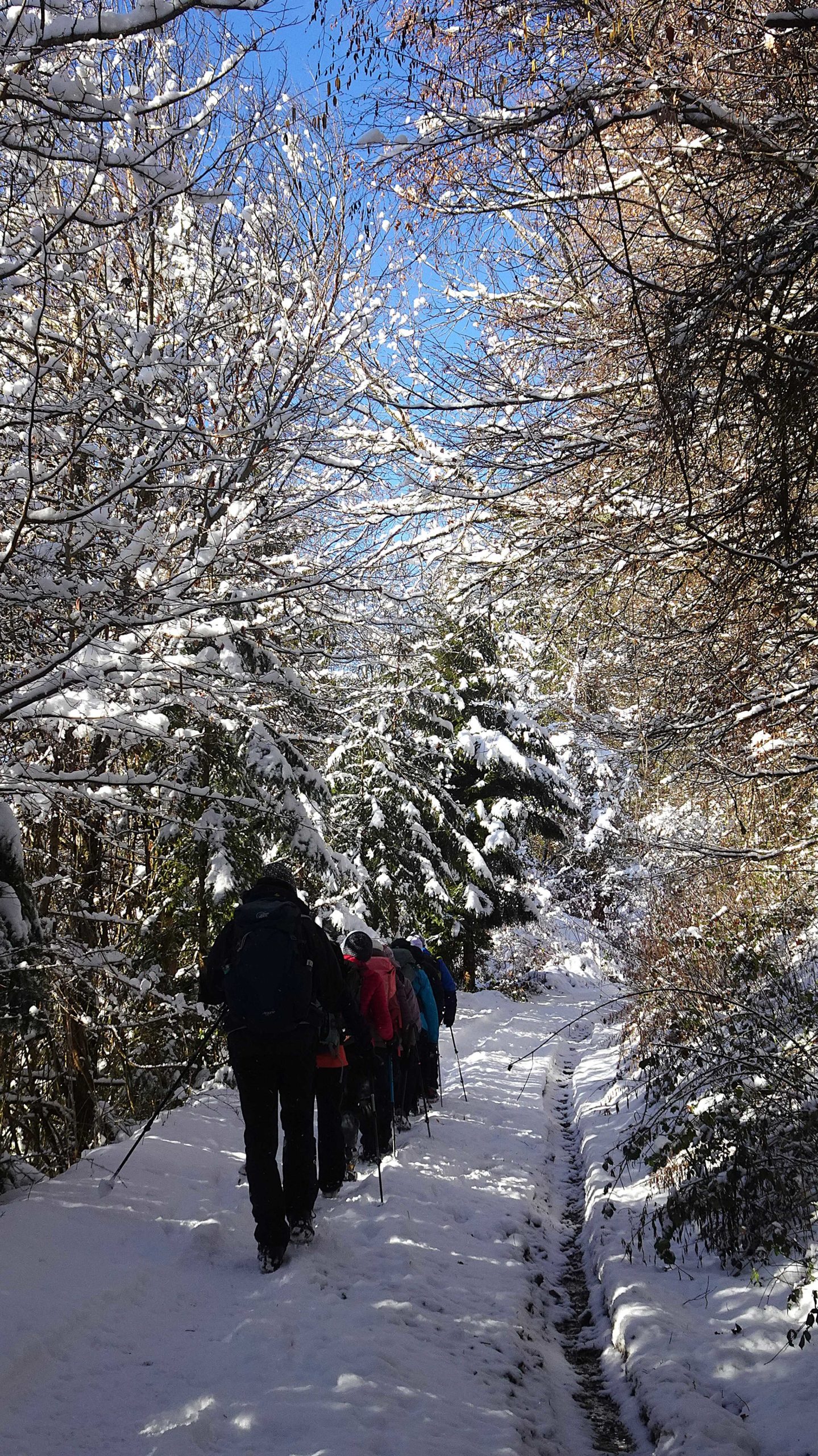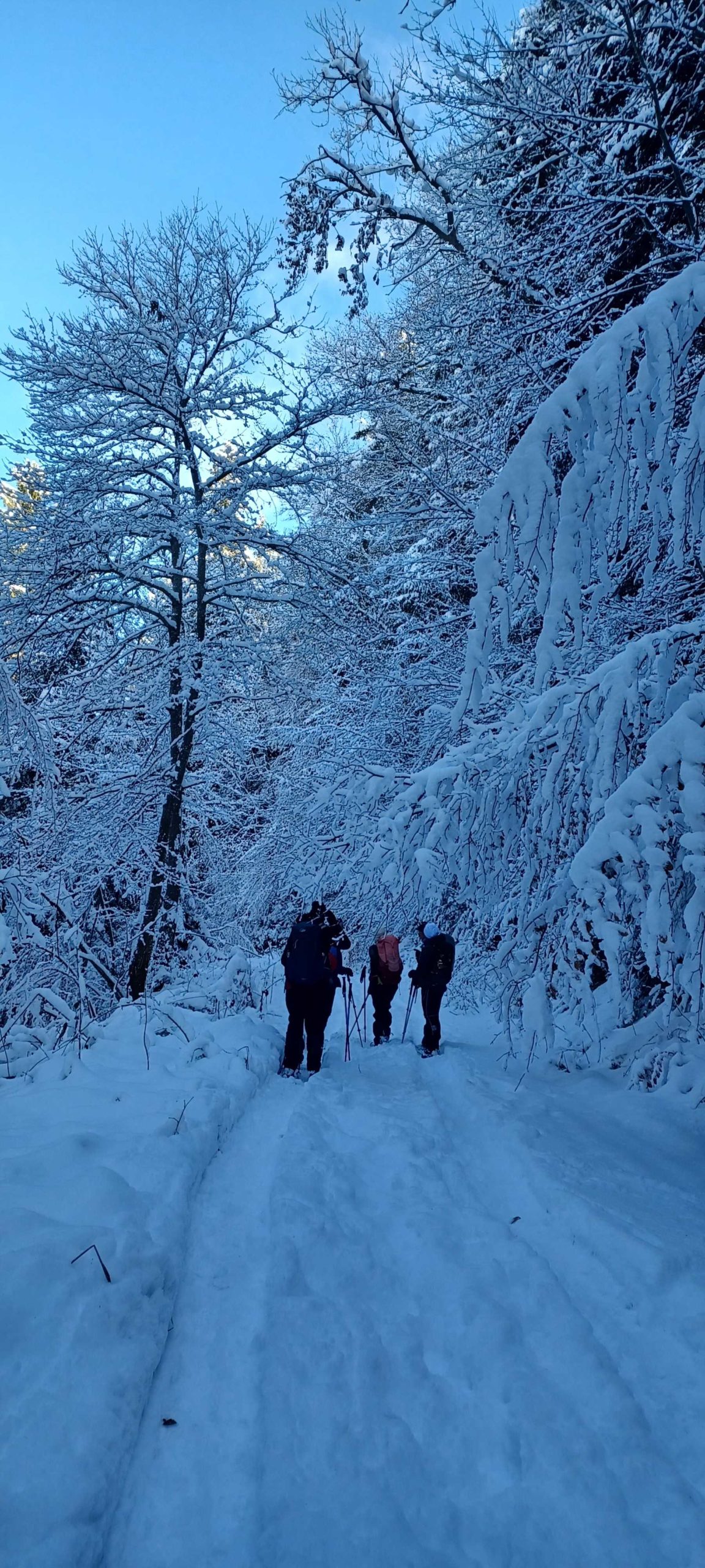 Crampons au pied, 11 personnes respirent à nouveau dans les chemins déserts et ensoleillés, loin des gaz polluants de la montée de Prapoutel !