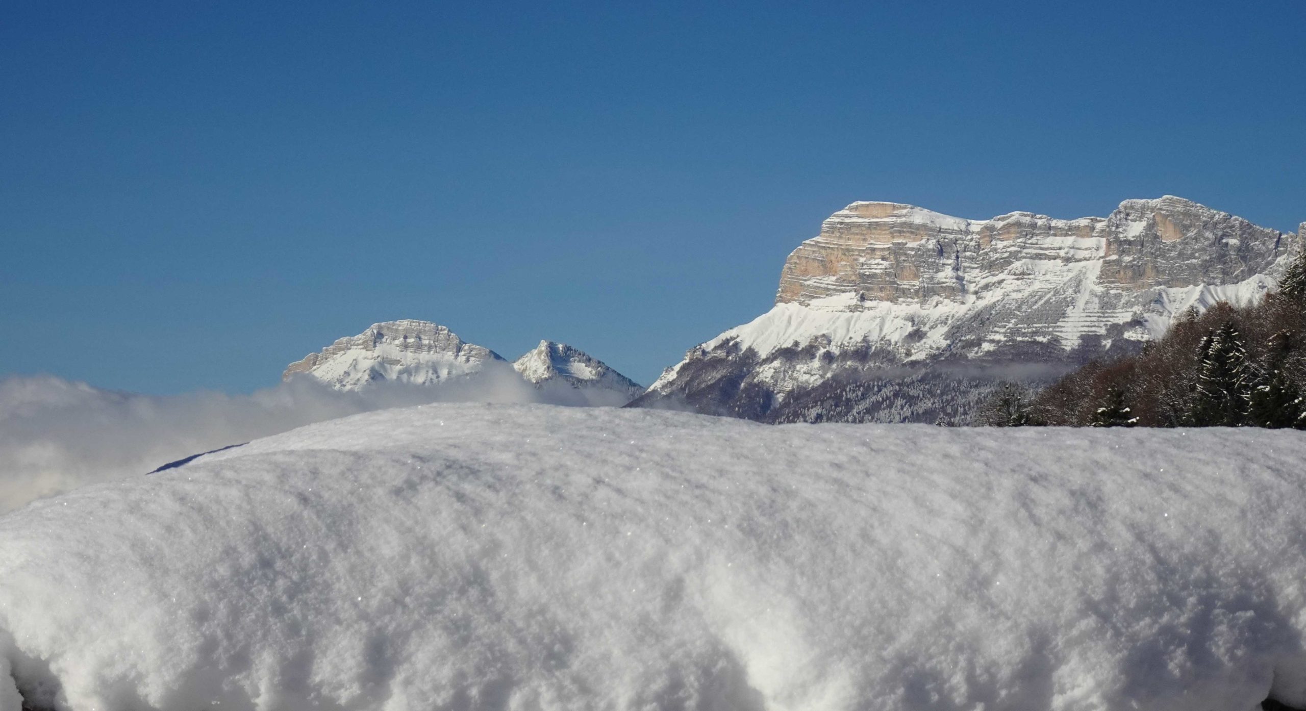 La pause repas se fait avec un panorama sur Theys et les sommets surplombants : le Ferrouillet , la Grande Lance de Doméne…etc