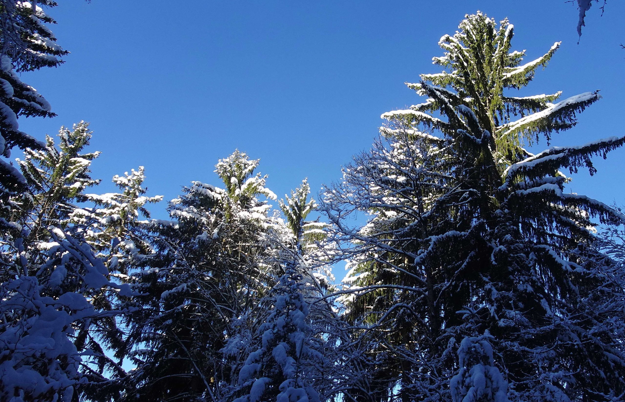 Nous entamons le circuit de La Vilette en passant devant la Grange à Phil, puis nous nous enfonçons dans la forêt sur un large piste bordée de feuillus et sapins bien chargés en neige .
