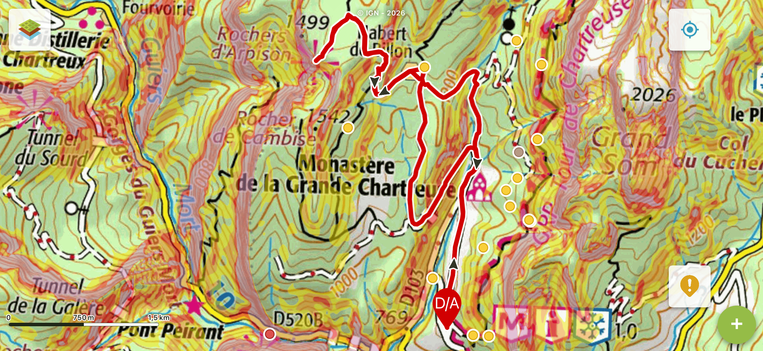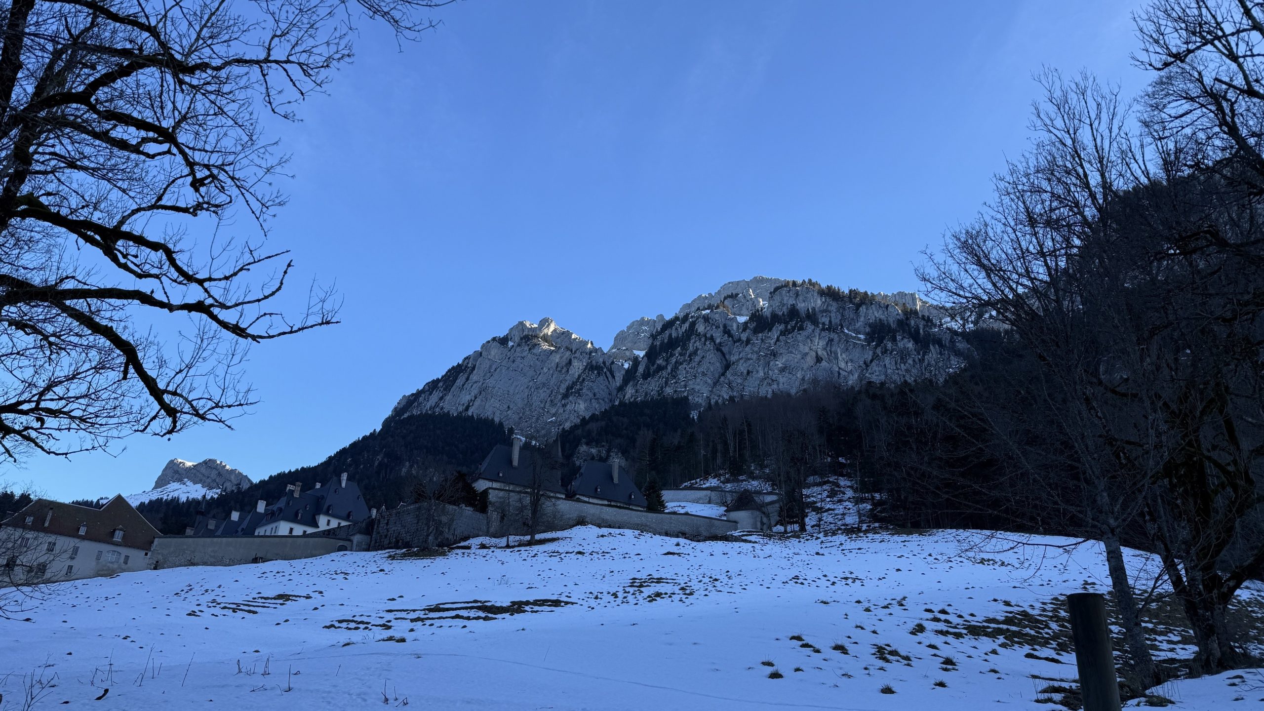Changement de date et de randonnée pour cette sortie pourtant dûment programmée. Ce n’était pas pour déplaire aux 7 azimutiens qui ont répondu présent à la proposition d’Alain d’aller faire un tour en Chartreuse au départ du Monastère pour une boucle de 13 km et 800m de D+ avec un BERA à 2 plutôt rassurant et malgré un vent de Sud plutôt fort et appelé à se renforcer sérieusement l’après-midi, nous voilà prévenus.. L’itinéraire a été choisi pour qu’à aucun moment notre cheminement ne passe sous des pentes de 30° ou plus.