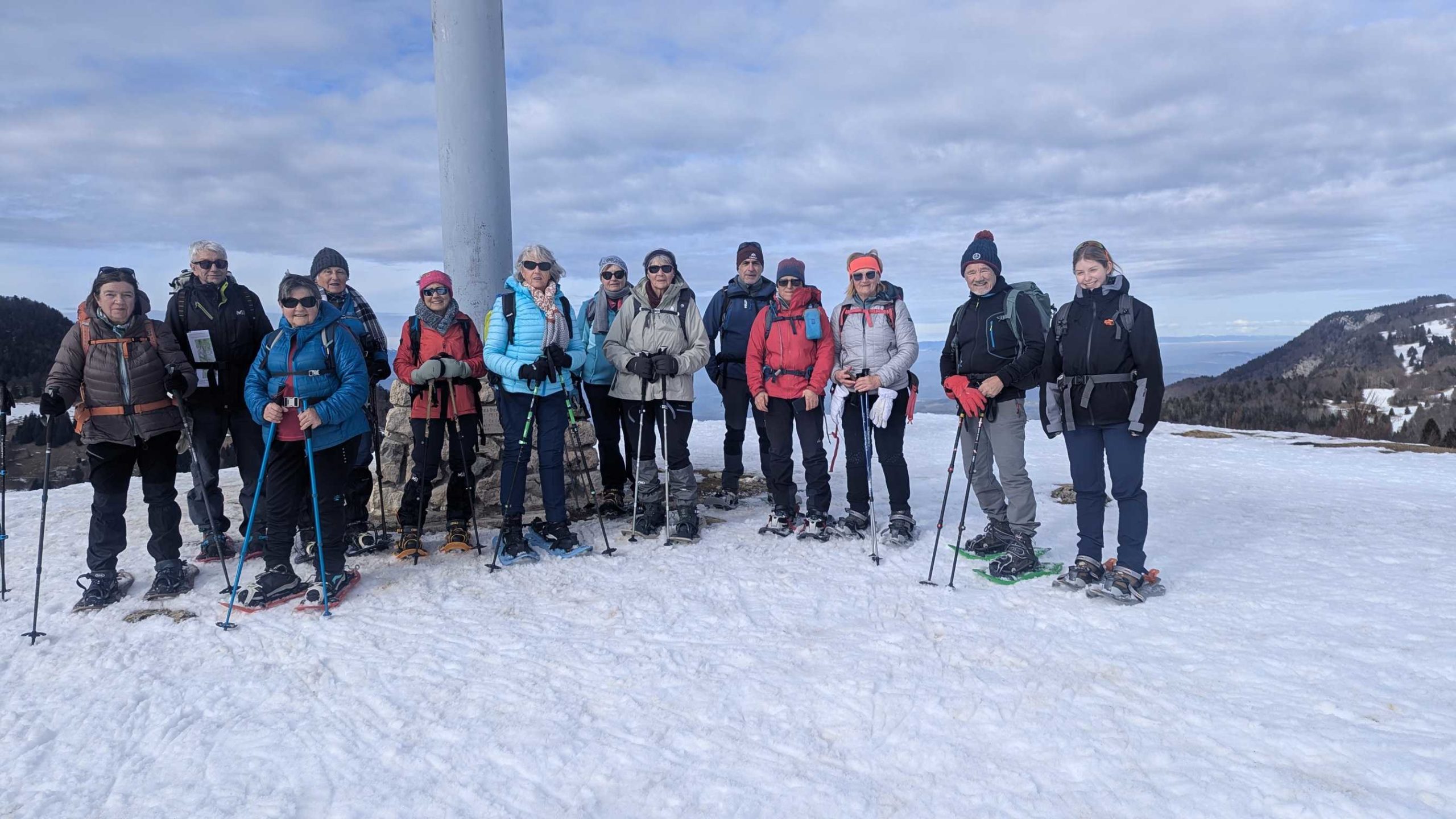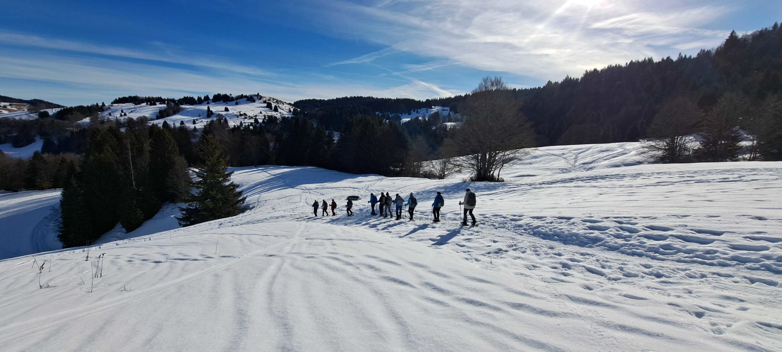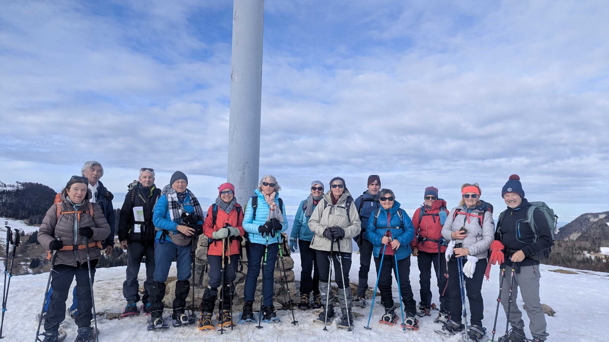 Enfin du soleil pour cette rando raquettes proposée par Patrick et Marie-Thé qui motivera 15 personnes .