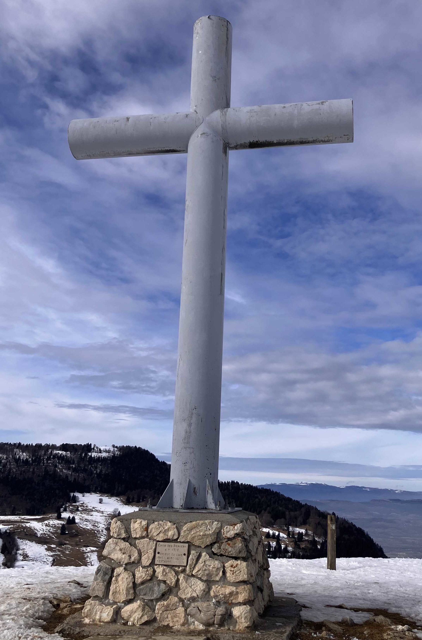 Il est presque 13h et les efforts nous ont ouvert l’appétit. Nous sommes au sommet du mamelon avec une vue sur le Revard, st OFFENGE-DESSUS et à travers les quelques sapins la Croix des Bergers et le sentier pour la rejoindre.