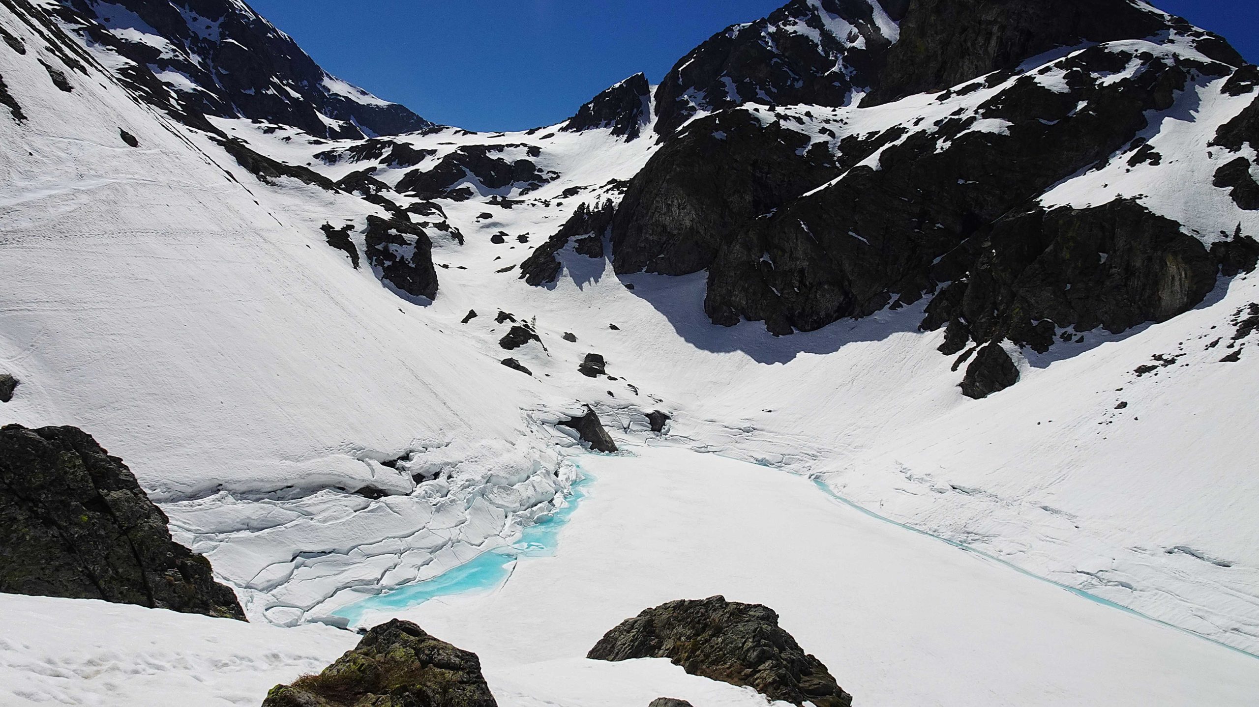 Seuls quelques skieurs de rando venant du Col ou refuge de la Pra descendent.