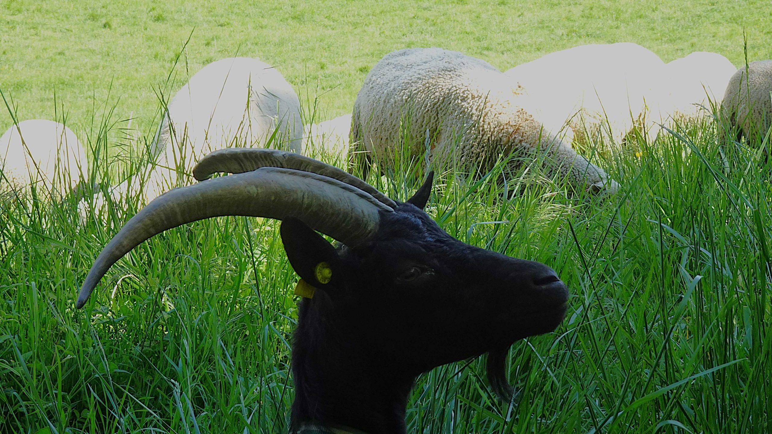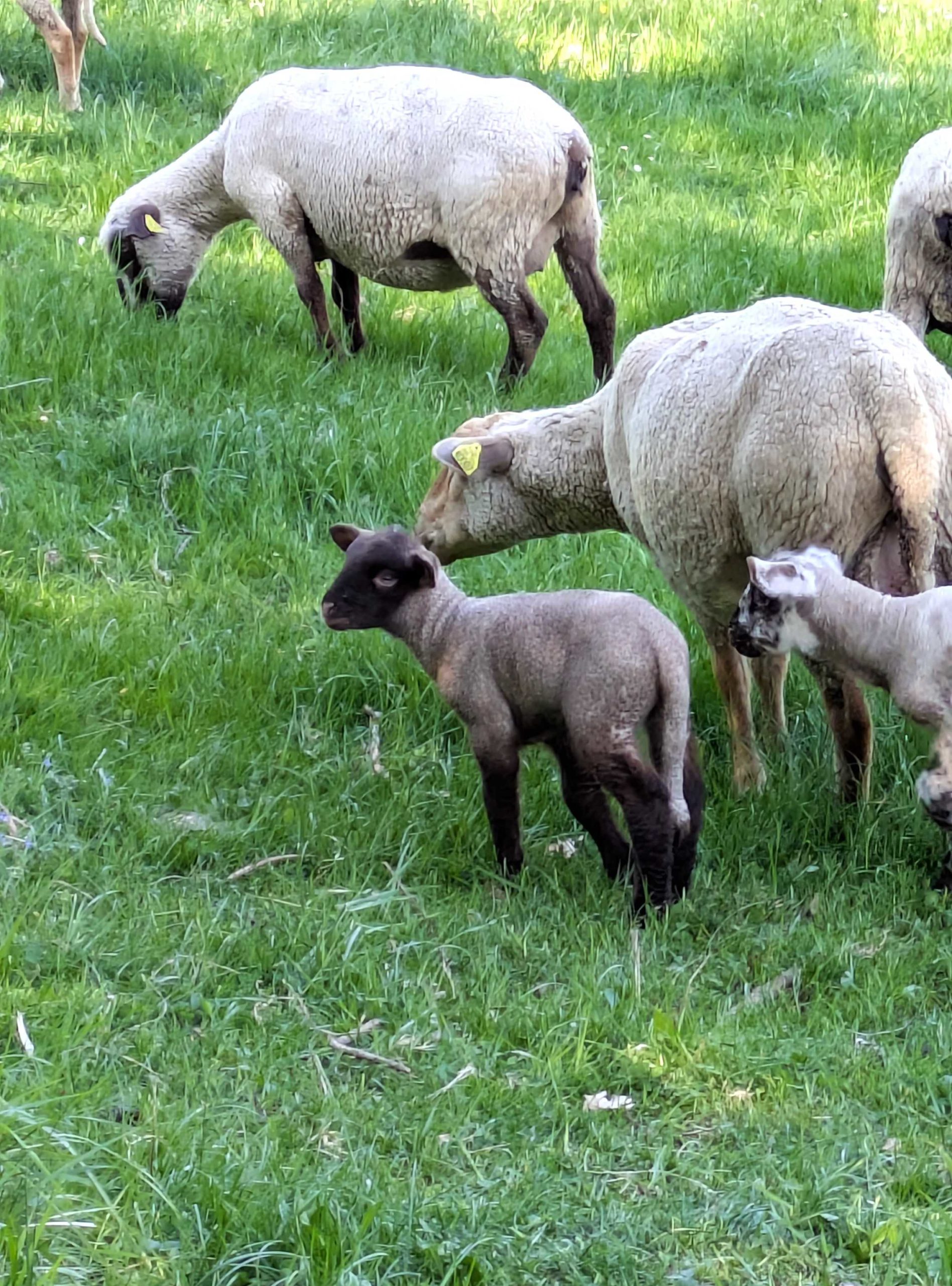 Nous longeons une prairie où un troupeau de moutons et chèvres et leurs petits de quelques jours, s’ébattent dans une bonne herbe grasse.