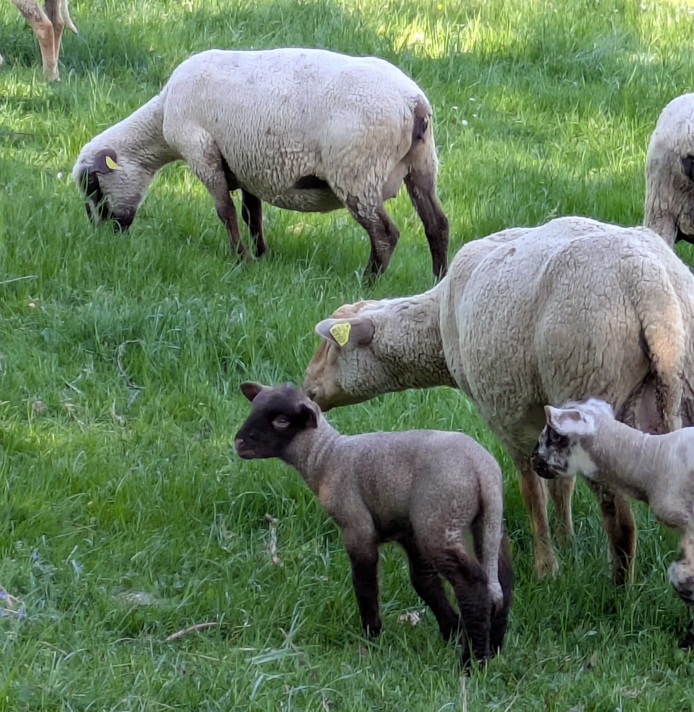 Nous longeons une prairie où un troupeau de moutons et chèvres et leurs petits de quelques jours, s’ébattent dans une bonne herbe grasse.